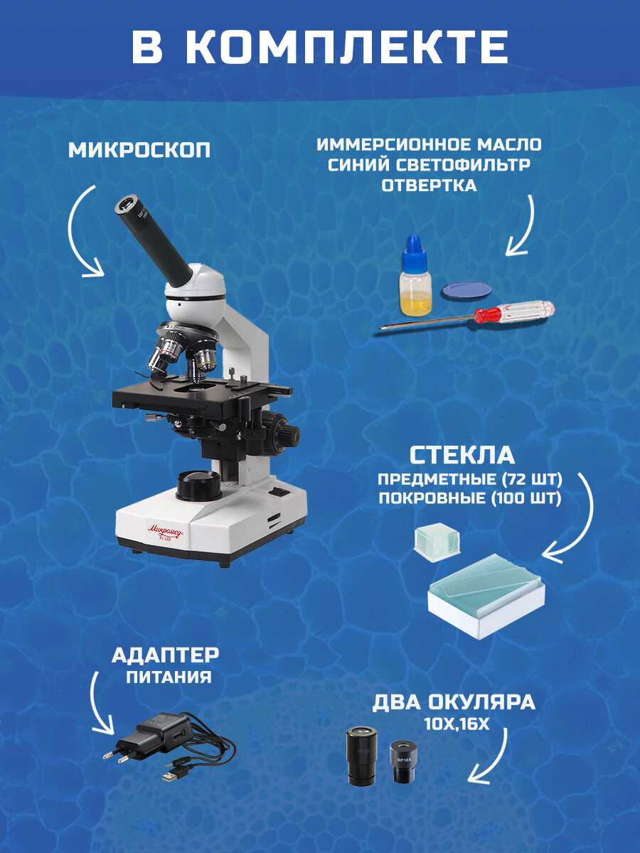 Характеристики:- тип микроскопа: оптический (световой)