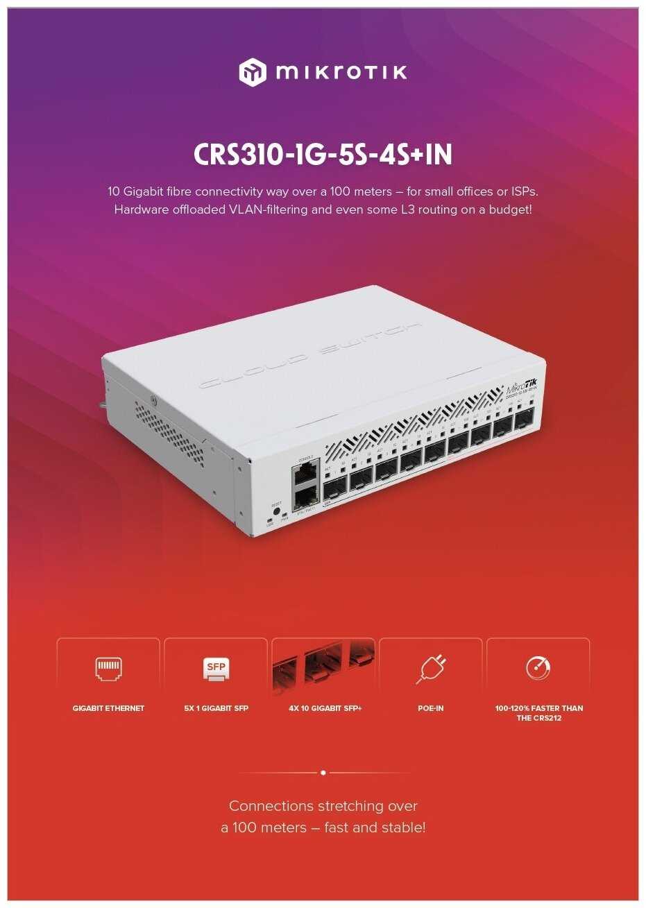 3 отзывов пользователей o MikroTik CRS310-1G-5S-4S+IN