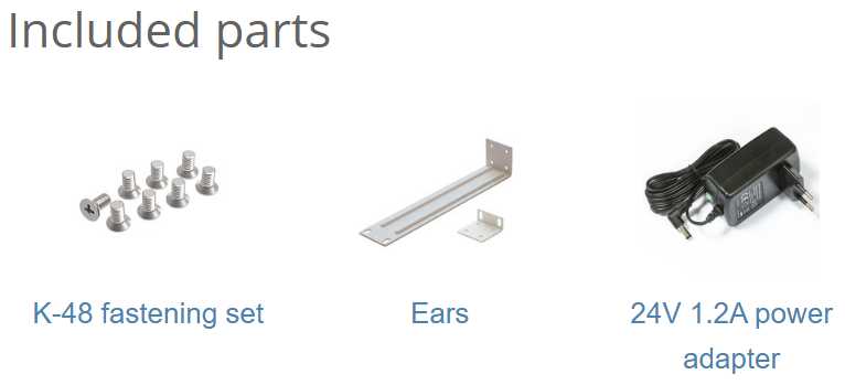 Дополнительная информация : | Коммутатор, внешний адаптер питания, инструкция по быстрой установке, стоечный комплект крепежа |