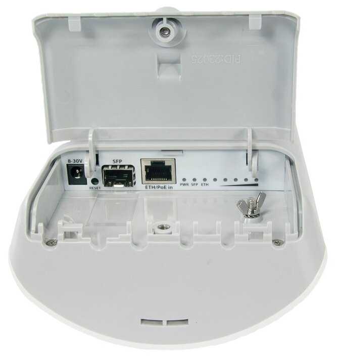 Настройку удалось выполнить только с помощью фирменной утилиты "WinBox". Настройку RouterOS (встроенной ОС) можно посмотреть в сети, там есть информация по дополнительным "плюшкам". Для перекрытия диапазона 2,4 ГГц, можно использовать двухчастотный репитер, принимает на 5 ГГц, передаёт на 2,4 ГГц, например - TP-LINK RE450. Можно улучшить защиту от внешней среды - поместить в дополнительный бокс из прозрачного материала для СВЧ волн.
