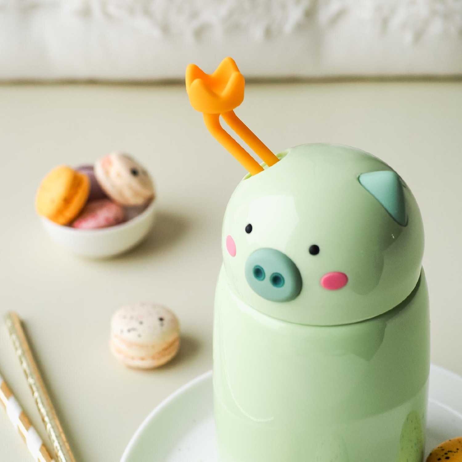 Отличные цвета, потрясающий дизайн, российская компания. Мне очень понравилась компактность, крышечку приятно держать в руках (на ней есть очень удобное колечко). Держу на рабочем столе, наливаю из термоса себе в небольшую кружечку по чуть-чуть кофе. Очень раскрашивает день. Свин радует глаз и согревает сердечко своими щечками.