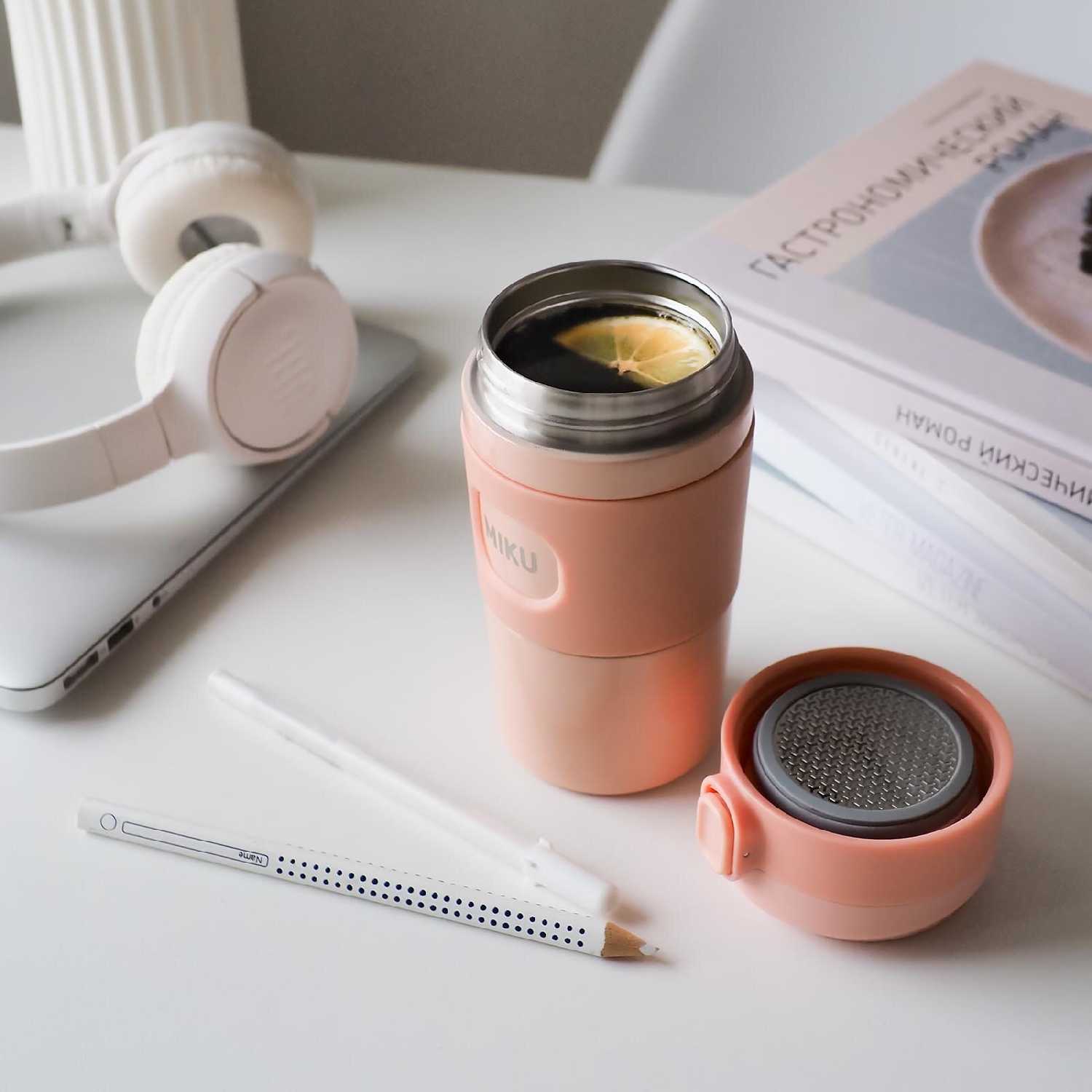 - + Держит тепло достаточно долго для термокружки. Чай остывает где-то за 6 часов нахождения в кружке. Хороший внешний вид, приятная на ощупь. Цвет персиковый, очень красивый