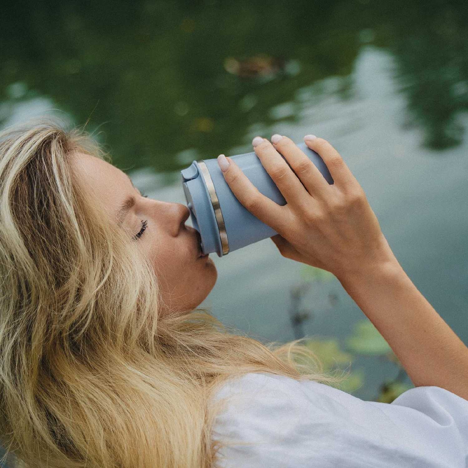 Пить удобно благодаря специальной дырочке в крышке, но она маленькая, поэтому напиток выливается понемногу, и большой глоток сделать сложно. Пользователи хвалят удобство для неспешного питья на ходу или заваривания чая. Крышка позволяет пить без проливов, подходит для кофе с собой или длительного употребления чая часами. Некоторые отмечают, что это не мешает в повседневном использовании. -