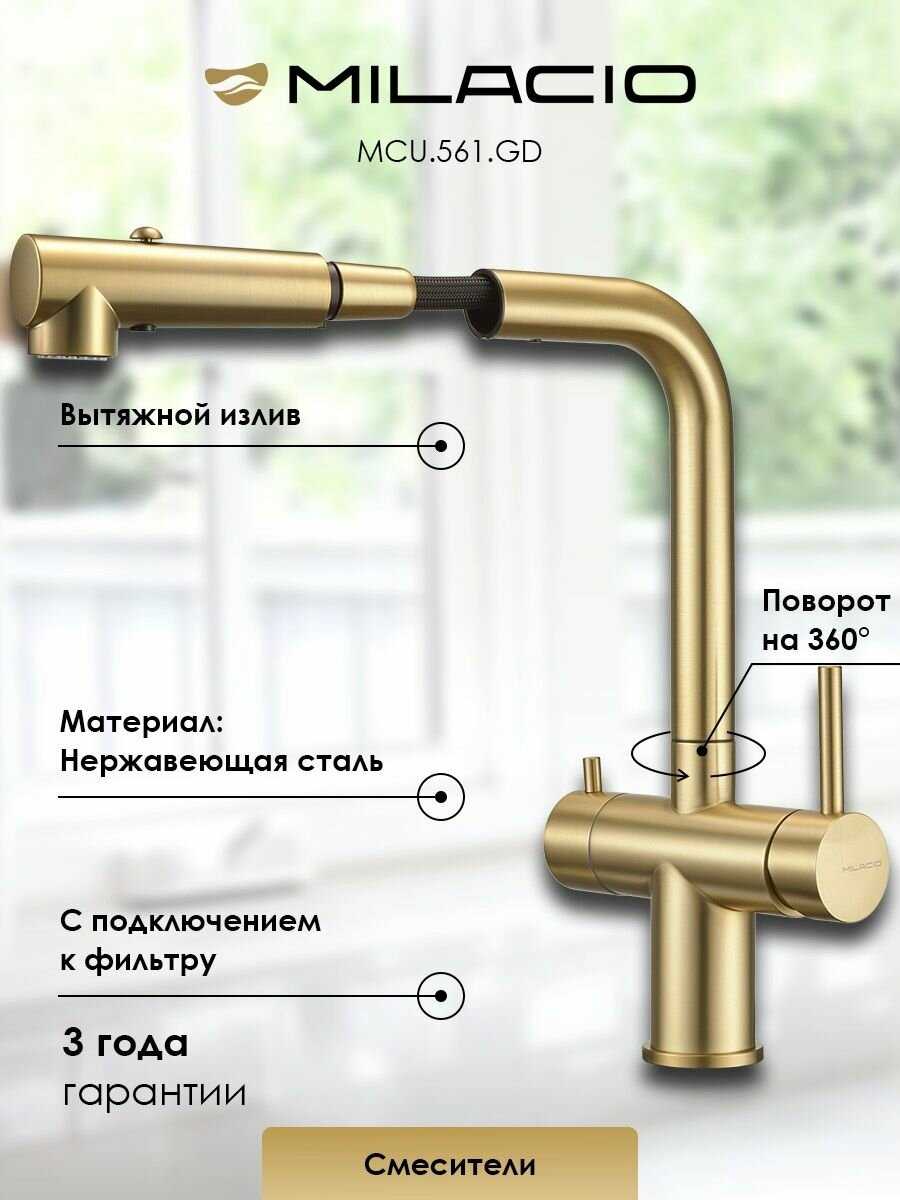 Отзывы о Смеситель для кухни Milacio Смеситель для кухни под фильтр с вытяжной лейкой (MCU.561)
