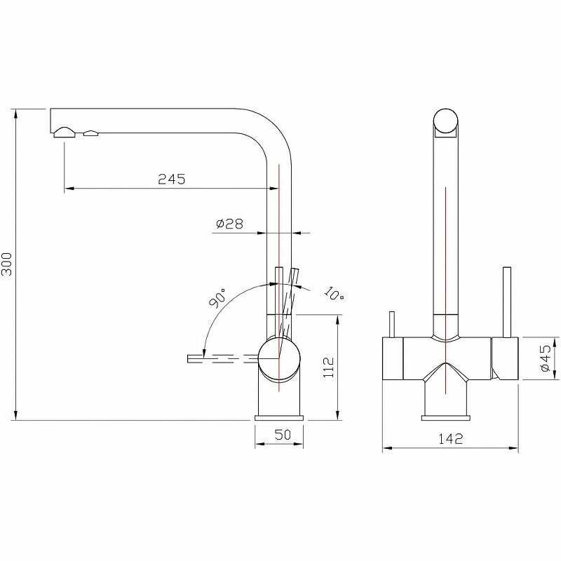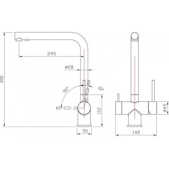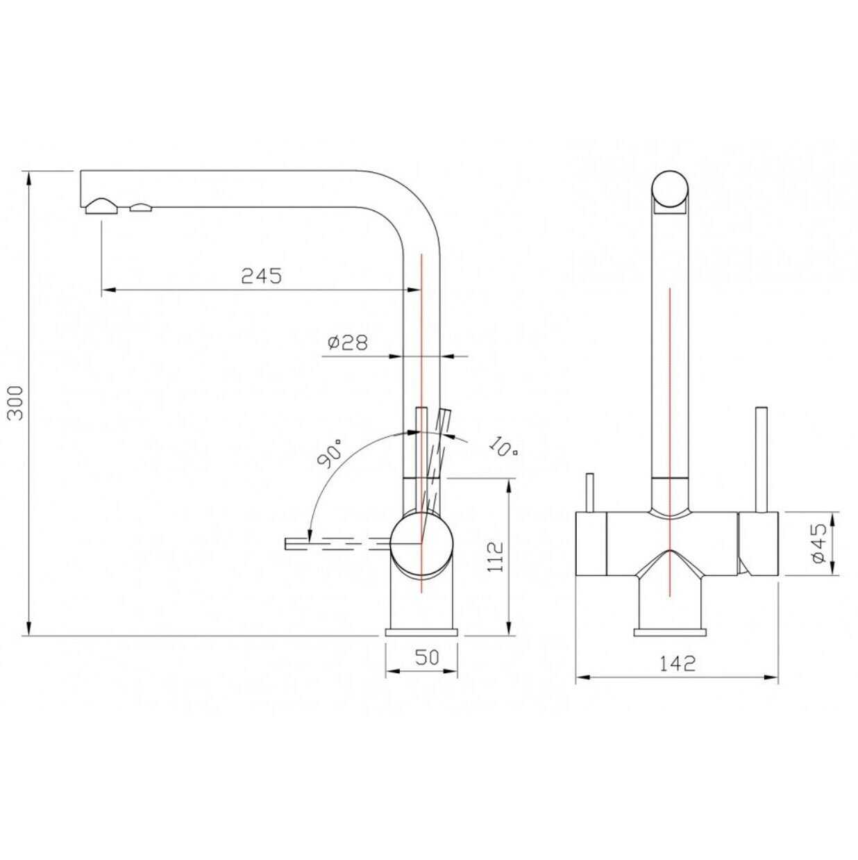 - длина излива: 245 мм