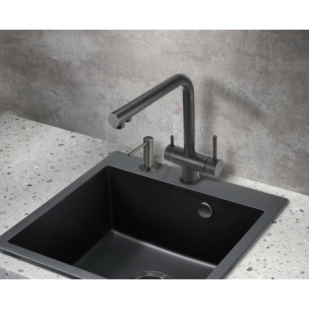 отличный смеситель. проблем с подключением воды и фильтра не возникло. вместе с таким же дозатором для моющего средства выглядит круто