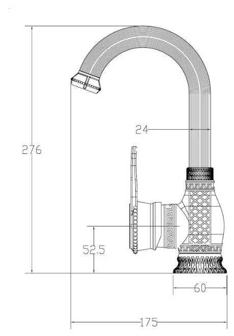 Такой смеситель может стать вообще центральным элементом кухни, потому что его дизайн сразу притягивает взгляд. Он кажется сделанным из благородного металла, хотя от бронзы там только покрытие, но выполненное весьма реалистично. Большой рычаг для регулировки температуры воды, он прокручивается вперед или назад, причем плавно, поэтому настройка температуры получается очень гибкой. Рельефный орнамент нанесен на некоторые детали, в основном на нижнюю часть крана и рычаг, мне это не кажется излишним, он очень даже в тему. Работает кран безупречно, со стороны монтажного отверстия нет протечки, и известковый налет там не накапливается. Чистится трудновато, но за такой дизайн на это можно закрыть глаза и потратить чуть больше времени.