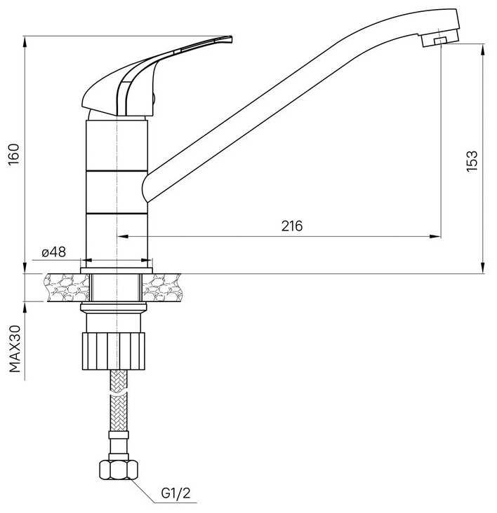 - - Гибкая подводка не укомплектована, нет удлинителей для подсоединения смесителя.