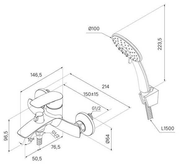 - назначение: для ванны с душем
