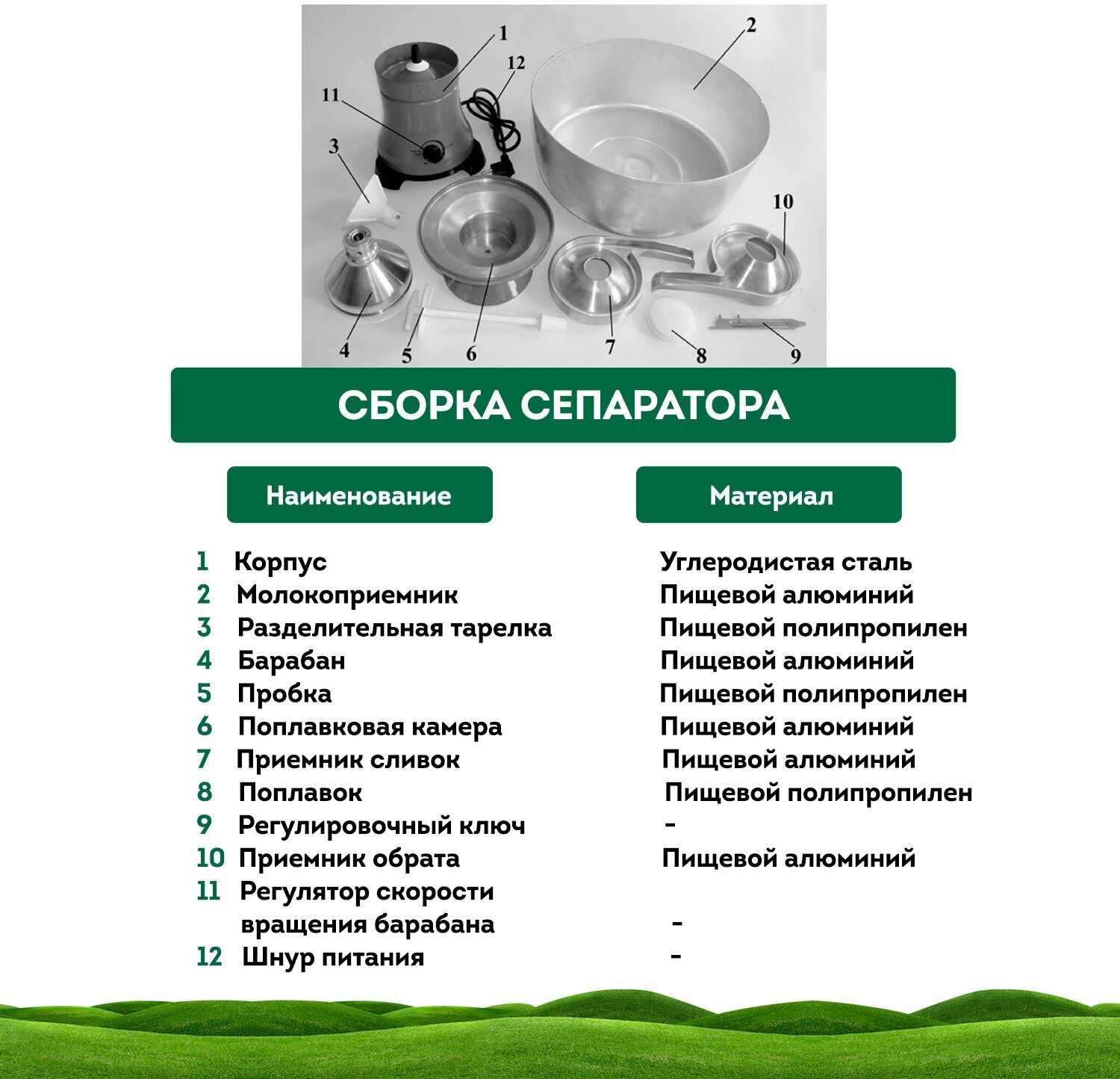 | Дополнительная информация : | Все детали сепараторов, контактирующие с молоком, изготовлены из пищевого алюминия или пищевого полипропилена. |