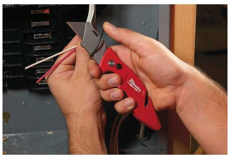 - + Удобная система хранения запасных лезвий. За счет кнопки удобно раскрывать и складывать нож.