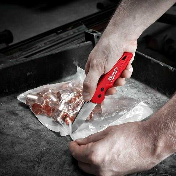 - + Прикольный рабочий нож. Ухватистый. Понравилось наличие стопорной кнопки защищающей от случайного раскрытия(например в кармане)