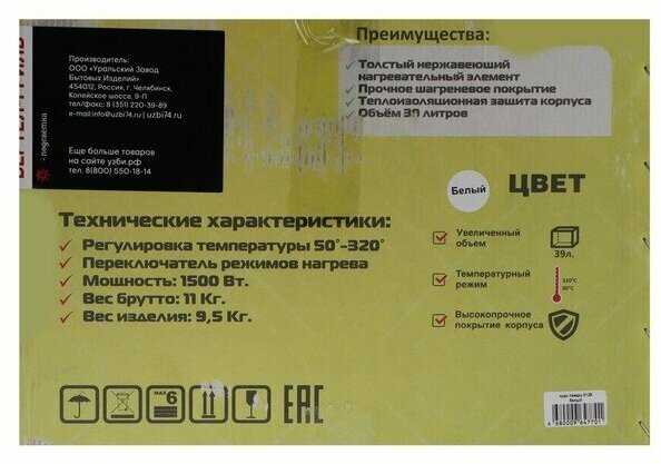 Характеристики:- объём камеры 39 л режимы: верхний нагрев