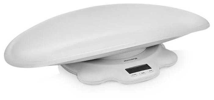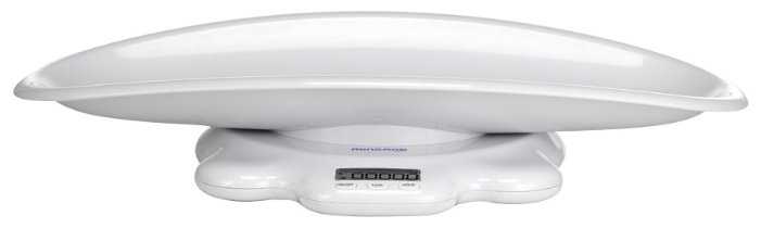 - + Съемный лоток, взвешивают от младенцев до подростков, электронный дисплей, память.