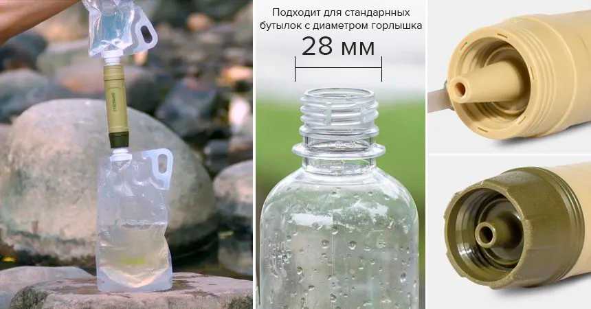 - + Маленький, компактный, имеет резьбу для прикручивания к пластиковой бутыли или к бурдюку.