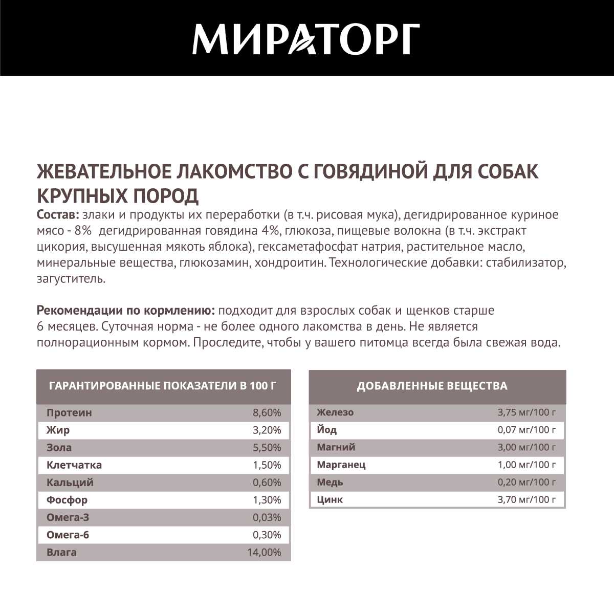 Норма употребления : | суточная норма – не более одного лакомства в день. |