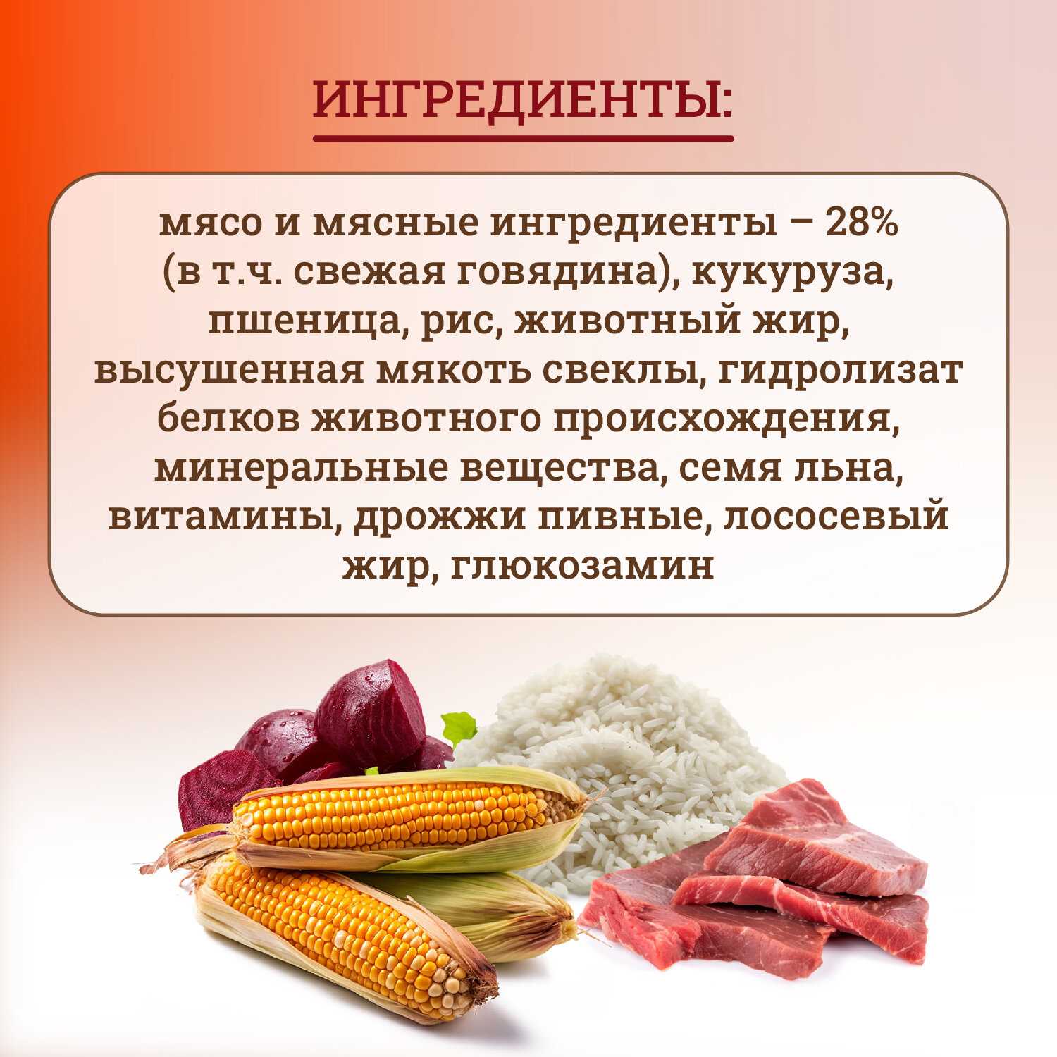 - Низкое содержание хондропротекторов (менее 0.5%) не подходит для пород с риском дисплазии суставов.