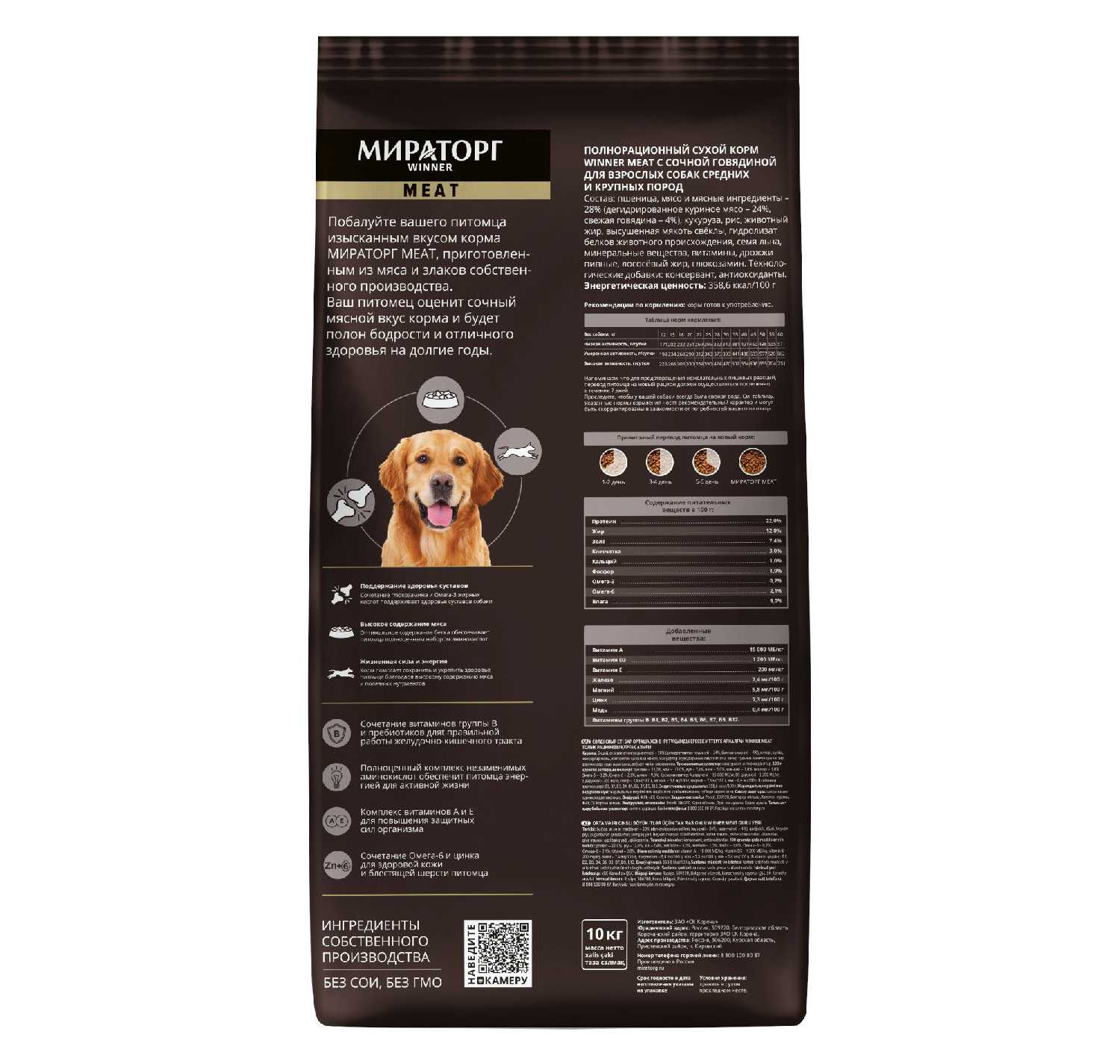 - + Очень большая упаковка.Моя собака очень благодарна,кушает с удовольствием,самое главное что ей нравится и в корме собраны витамины все необходимые минералы для полноценного здоровья питомца.Мираторг очень бережно заботиться о наших питомцах и их здоровье,росте и развитии.Благодарю от души также за доступную цену.К покупке рекомендую.