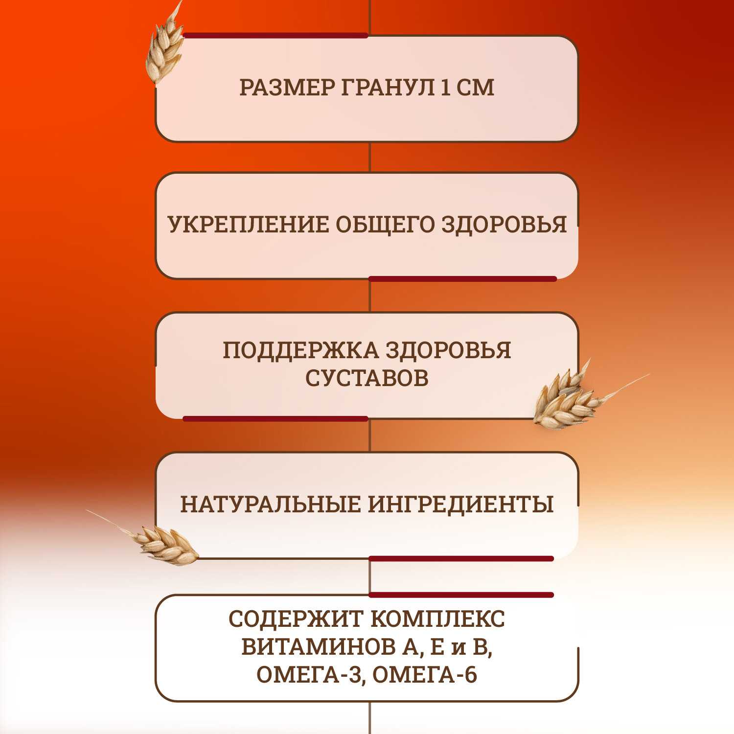 - Диаметр гранул (около 12 мм) стимулирует жевание, предотвращая заглатывание целиком, что важно для профилактики желудочных расстройств.
