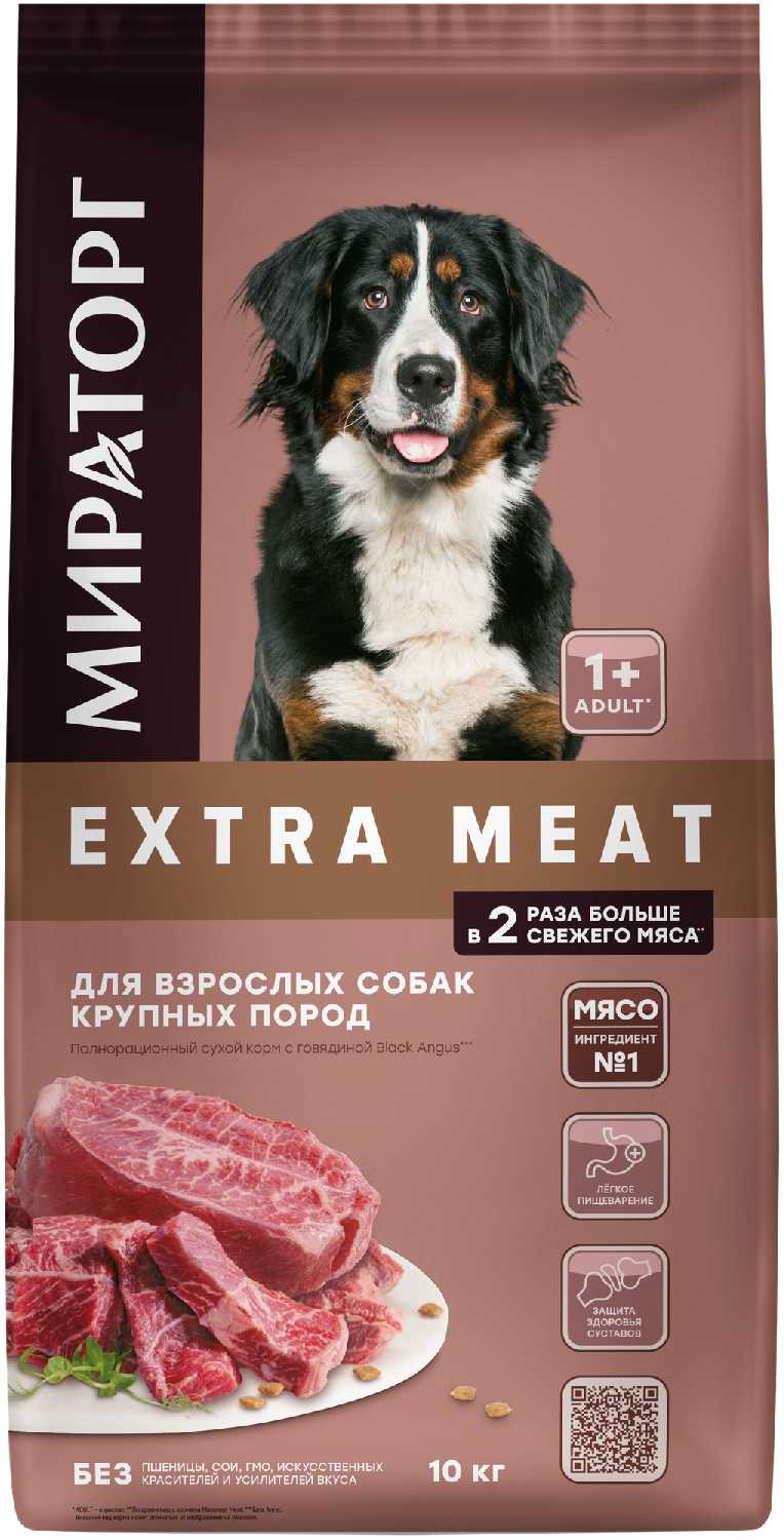 - + до этого брали просто Мираторг мит, перешли на экстра мит, собака ест сухой замечательно