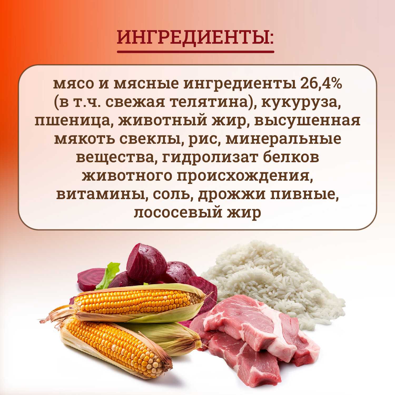 - Сбалансированная рецептура с мясными компонентами (например, телятина) обеспечивает высокую биологическую ценность.