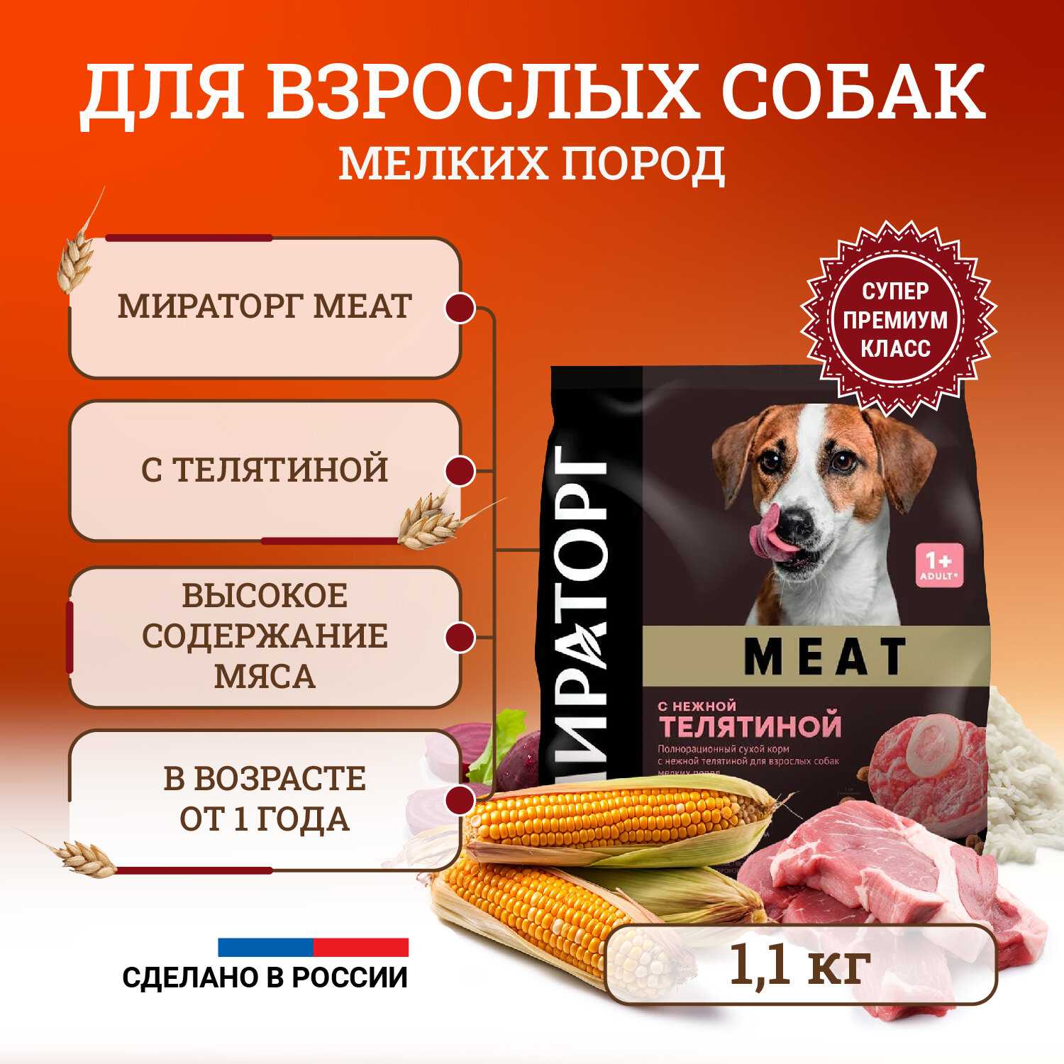 Обзор Мираторг MEAT для взрослых собак мелких пород с нежной телятиной*: