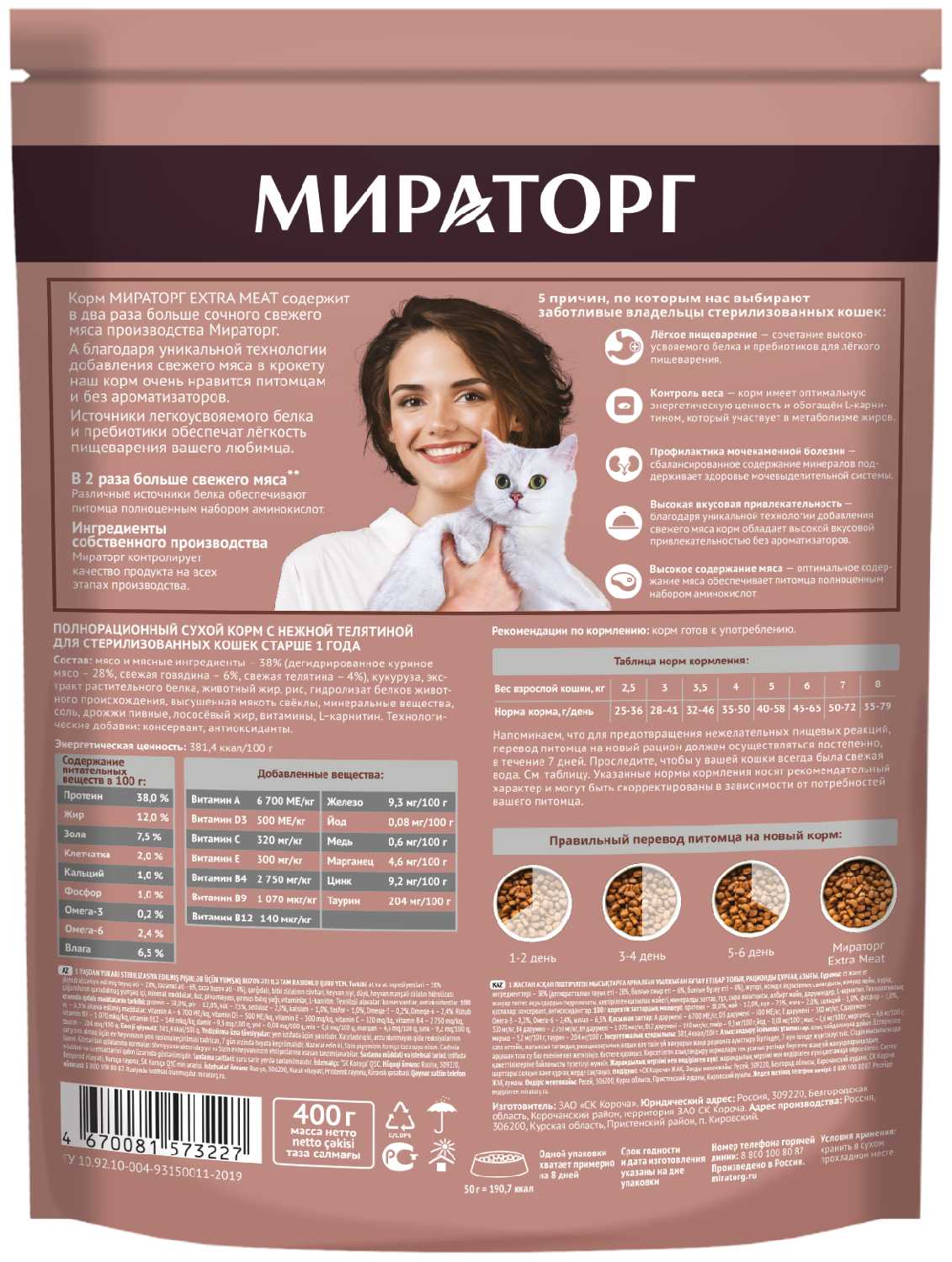 Характеристи Мираторг с нежной телятиной для стерилизованных кошек