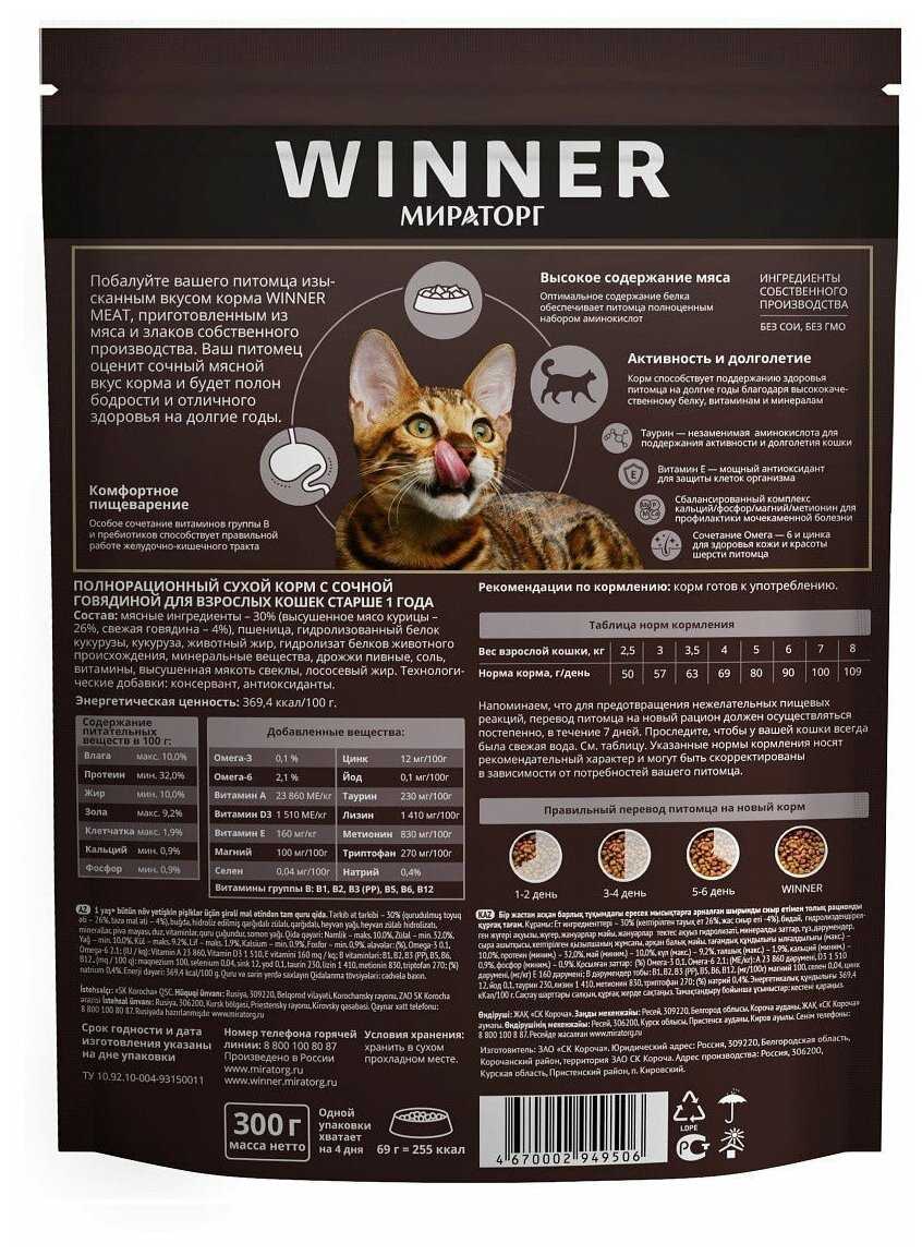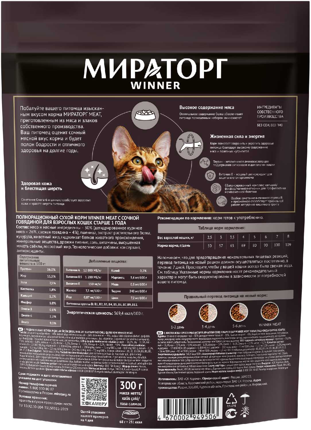 Обзор Мираторг с сочной говядиной для взрослых кошек*: