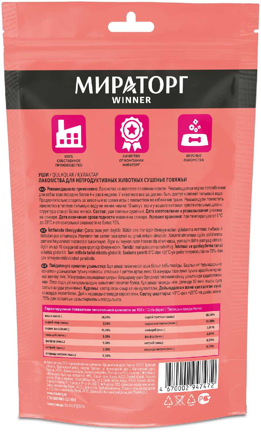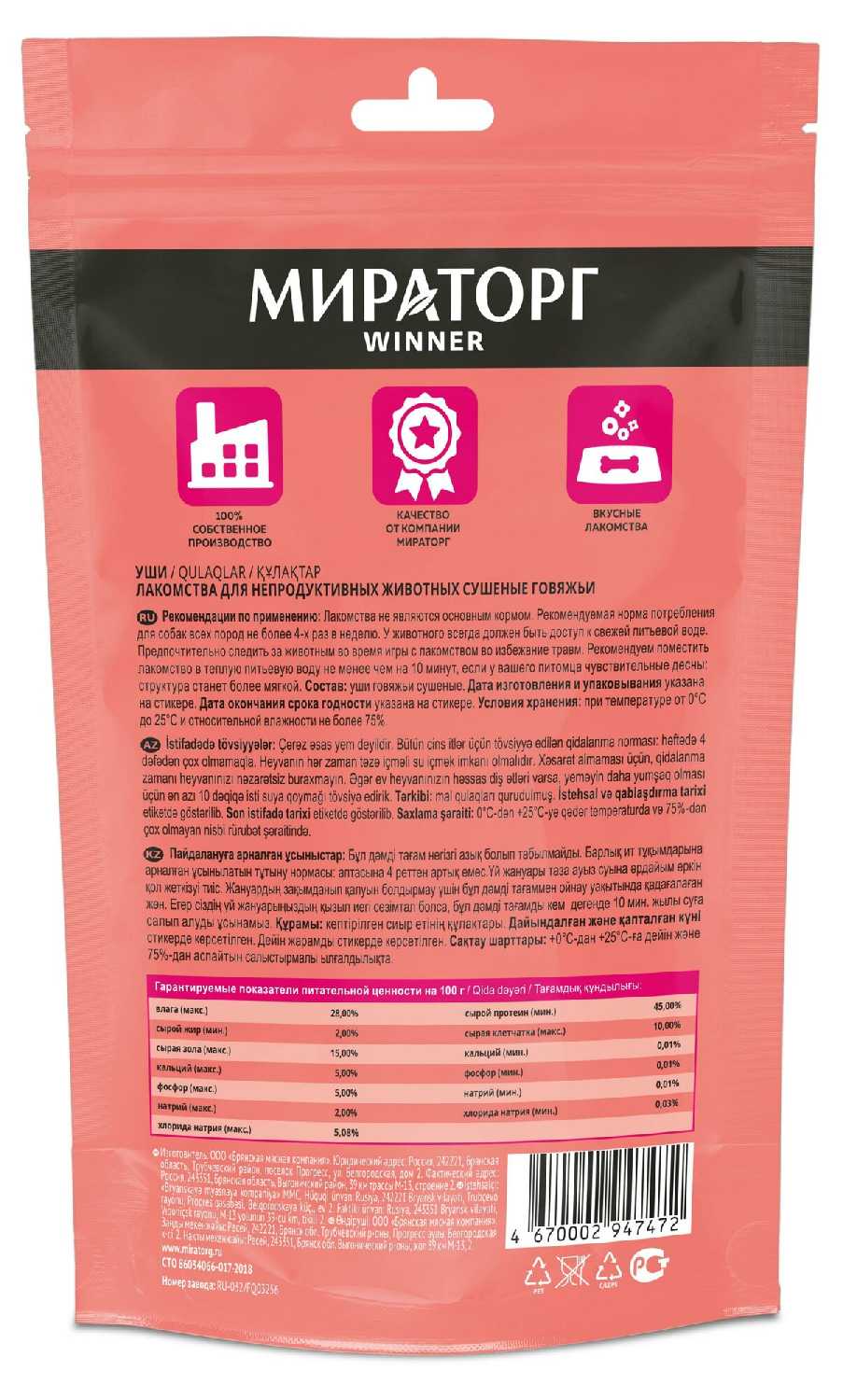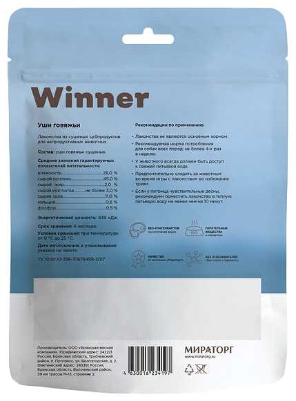 Характеристи Мираторг Уши говяжьи