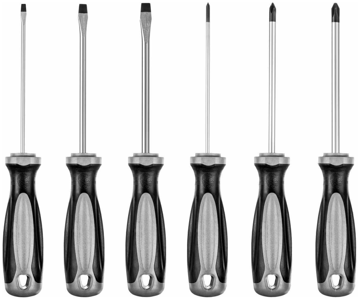 Набор марки Matrix продаётся в строительных Гипермаркетах, цена примерно одинаковая, но на маркетплейс Goods.ru можно купить по привлекательной стоимости. Качество такого набора соответствует заявленной стоимости, поэтому рекомендую к покупке. Надёжность инструмента приемлемая, и напрямую зависит от умения работать. Упакован в блистере, значит нет дополнительной переплаты за упаковку. Ручка выполнена из крепкого пластика, металлическая часть ровная шлиц качественный. Маркетинг на Goods.ru направлен для покупателя и этим нужно пользоваться, покупки выгодные и возврат в виде бонусных рублей делают своё дело, покупки становятся чаще, а дорогие вещи ближе.