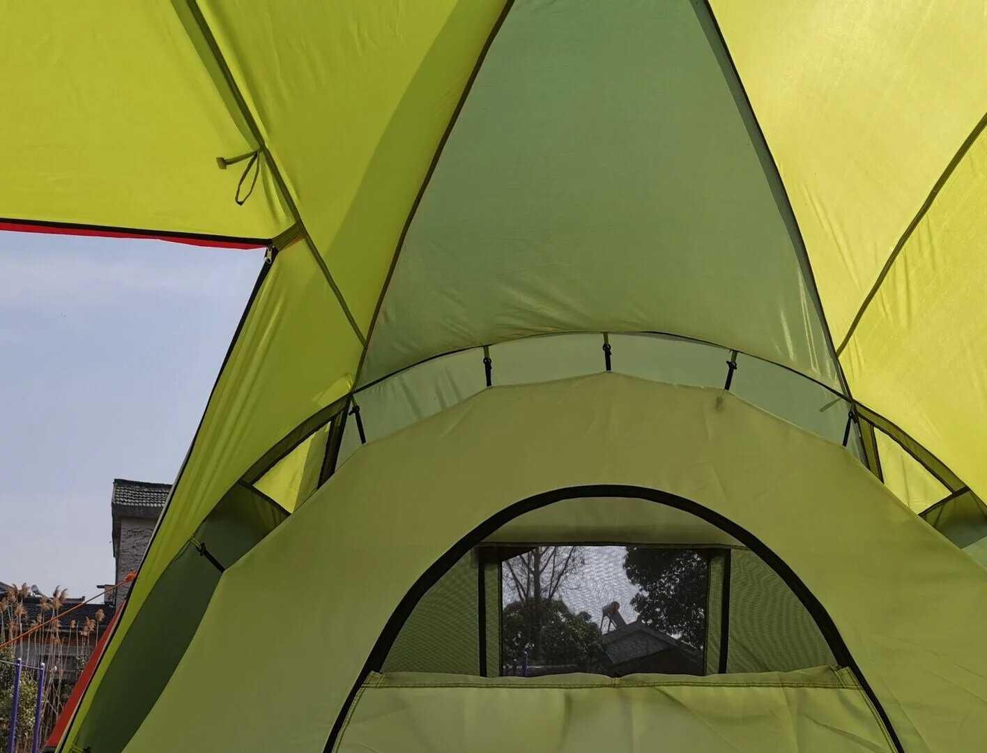 Каждая комната имеет размеры примерно 160 х 2 метра, что позволяет встать в полный рост. Тамбур большой, подходит для вечерних посиделок или хранения вещей. Планировка продуманная с двумя жилыми модулями, крепящимися к опорам. Пользователи подтверждают огромный объем, где легко размещаются матрасы и снаряжение. Общая форма обтекаемая, уменьшает парусность. -