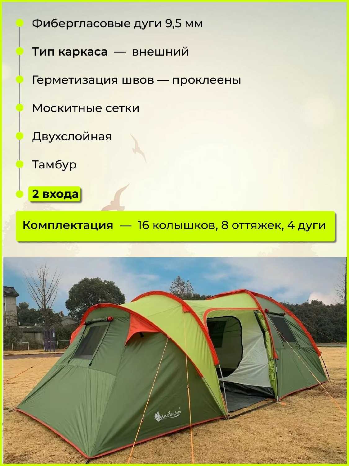 - + Классная палатка,большая,удобная то ,что нужно для большой семьи.