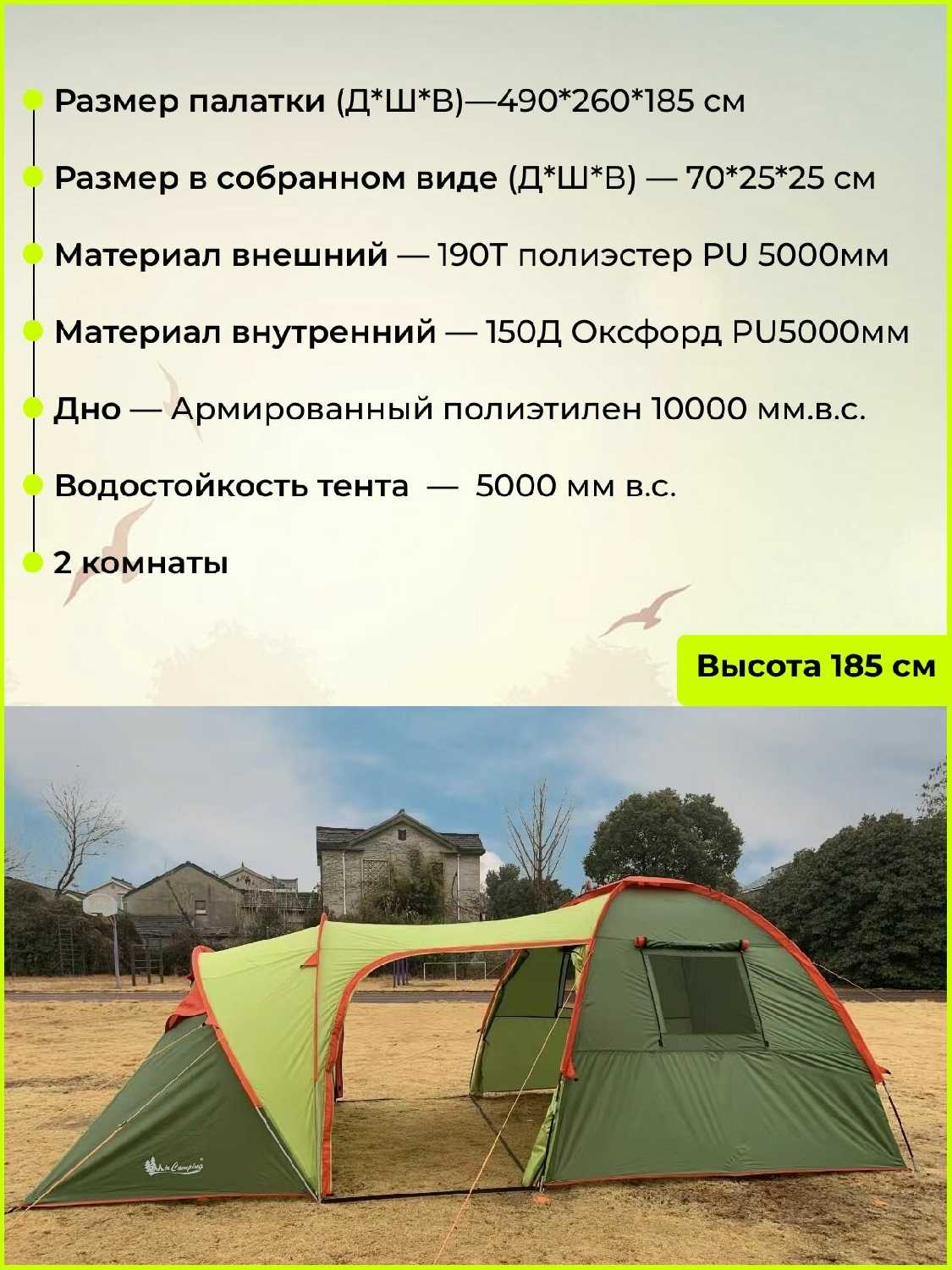 - Водостойкость тента: 3000 мм вод. ст.