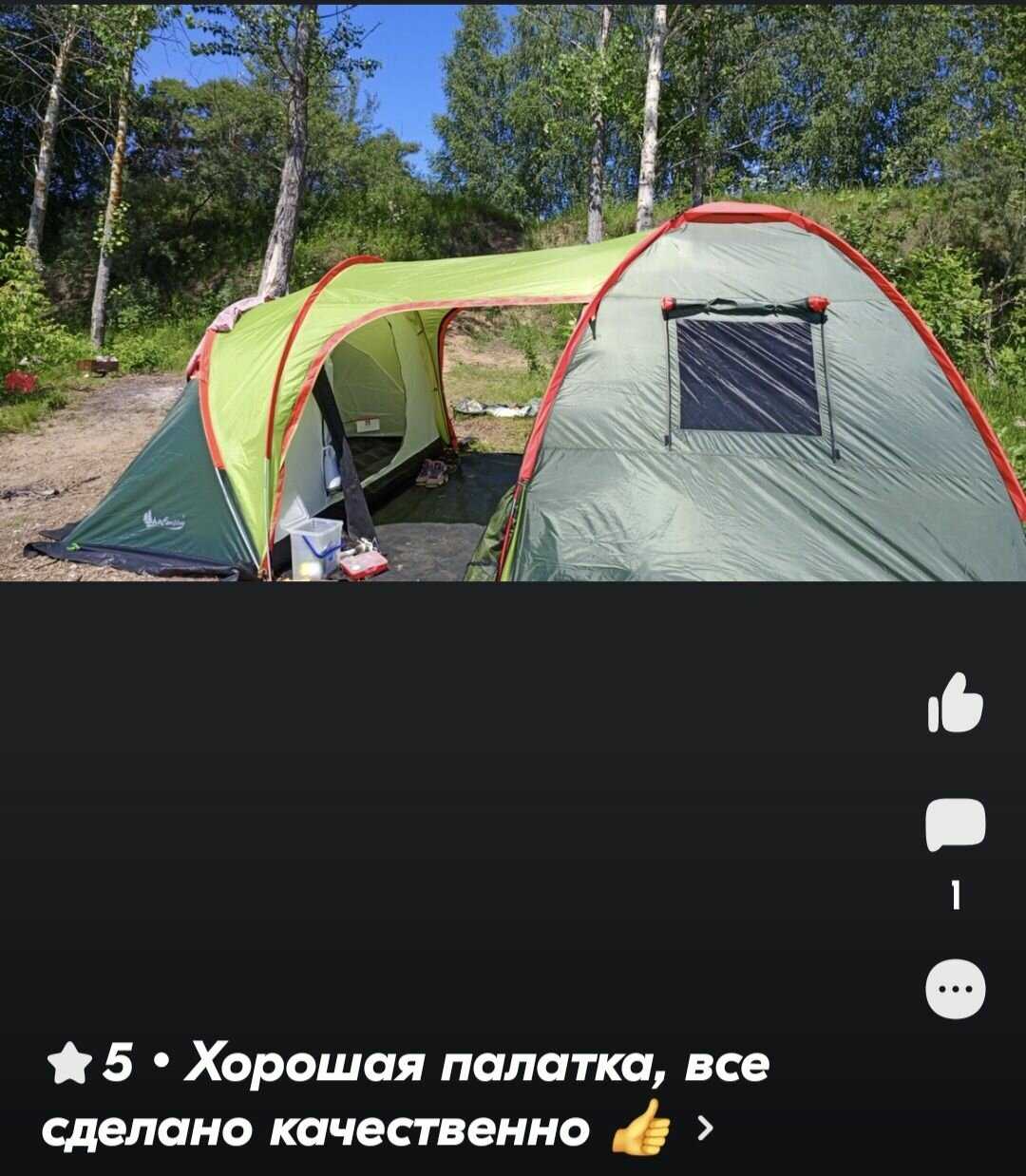 - + Достойная палатка, вместительна. Лично я покупке рад