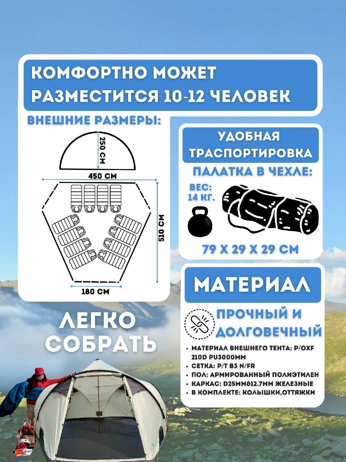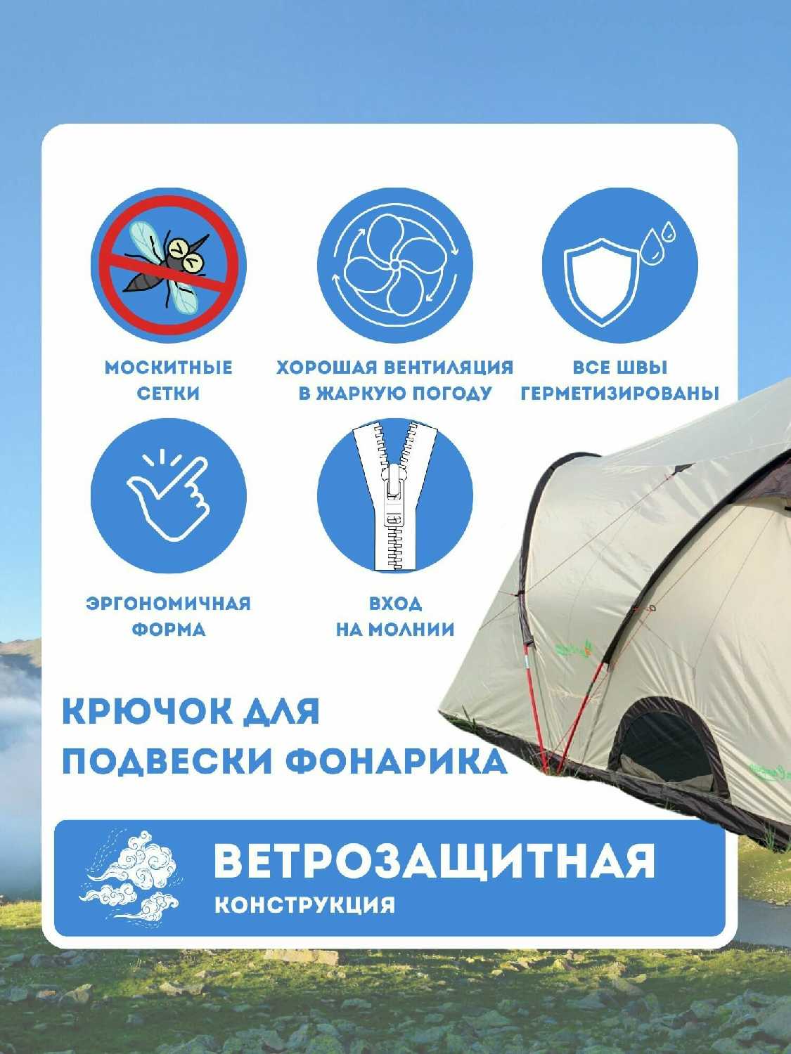 - + отличная палатка,выдержала при первом использовании сильнейший удар непогоды,который начался в 20.00 и продолжался всю ночь ,собирается быстро .