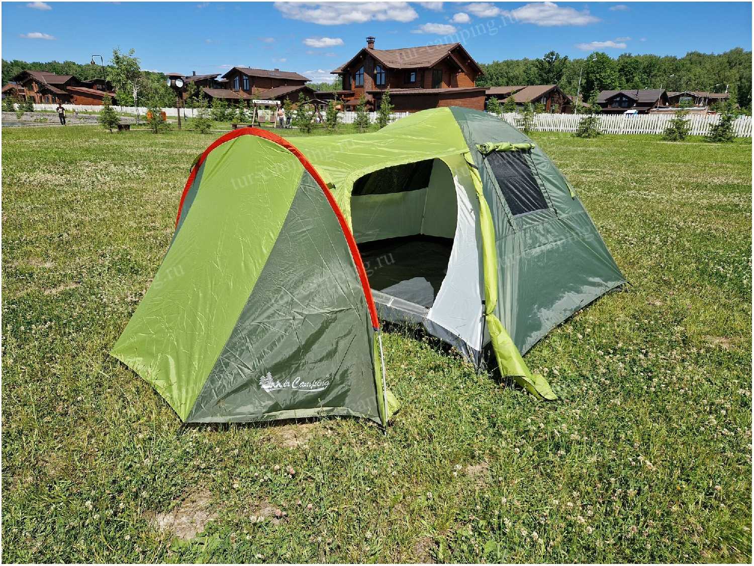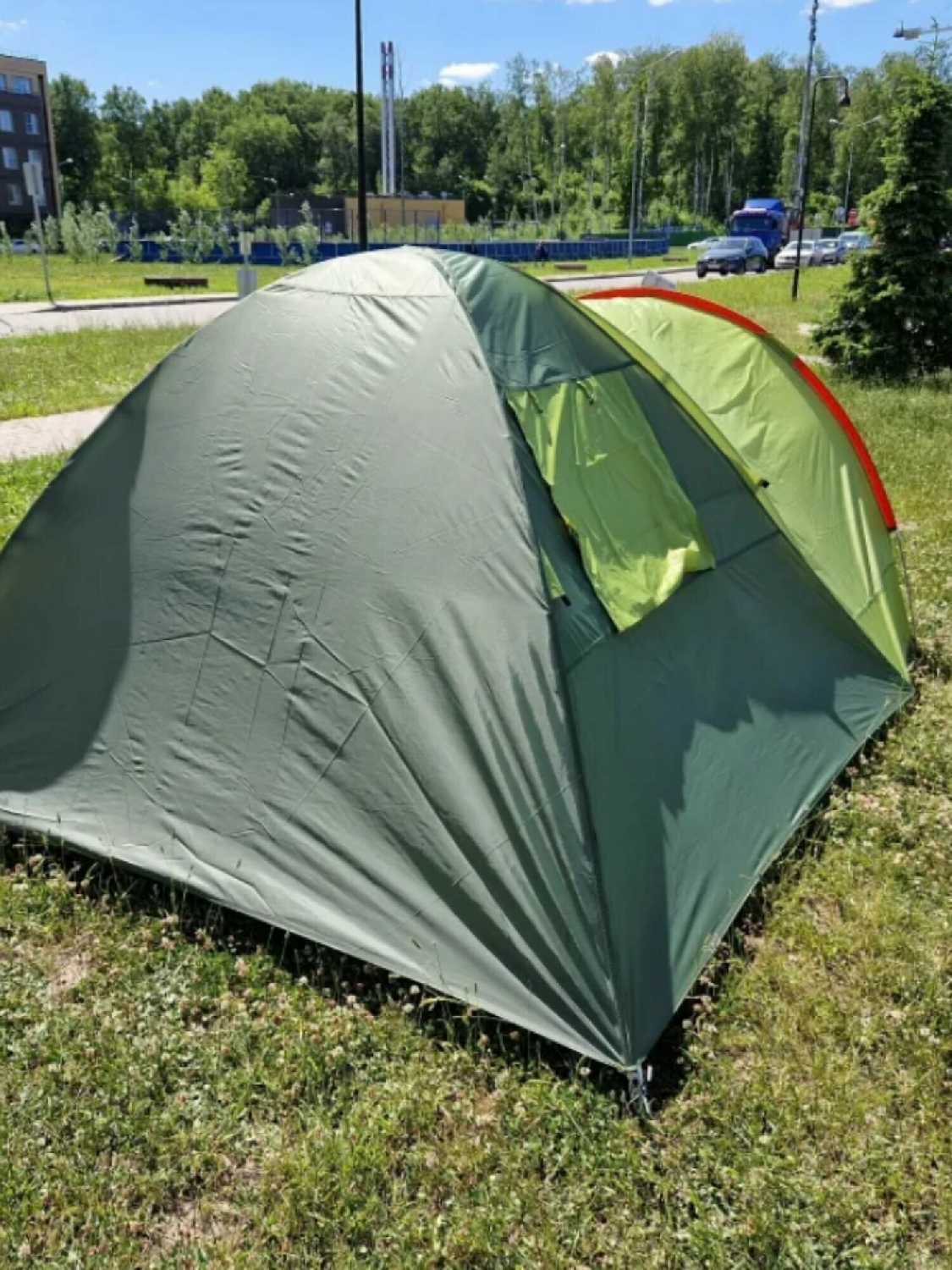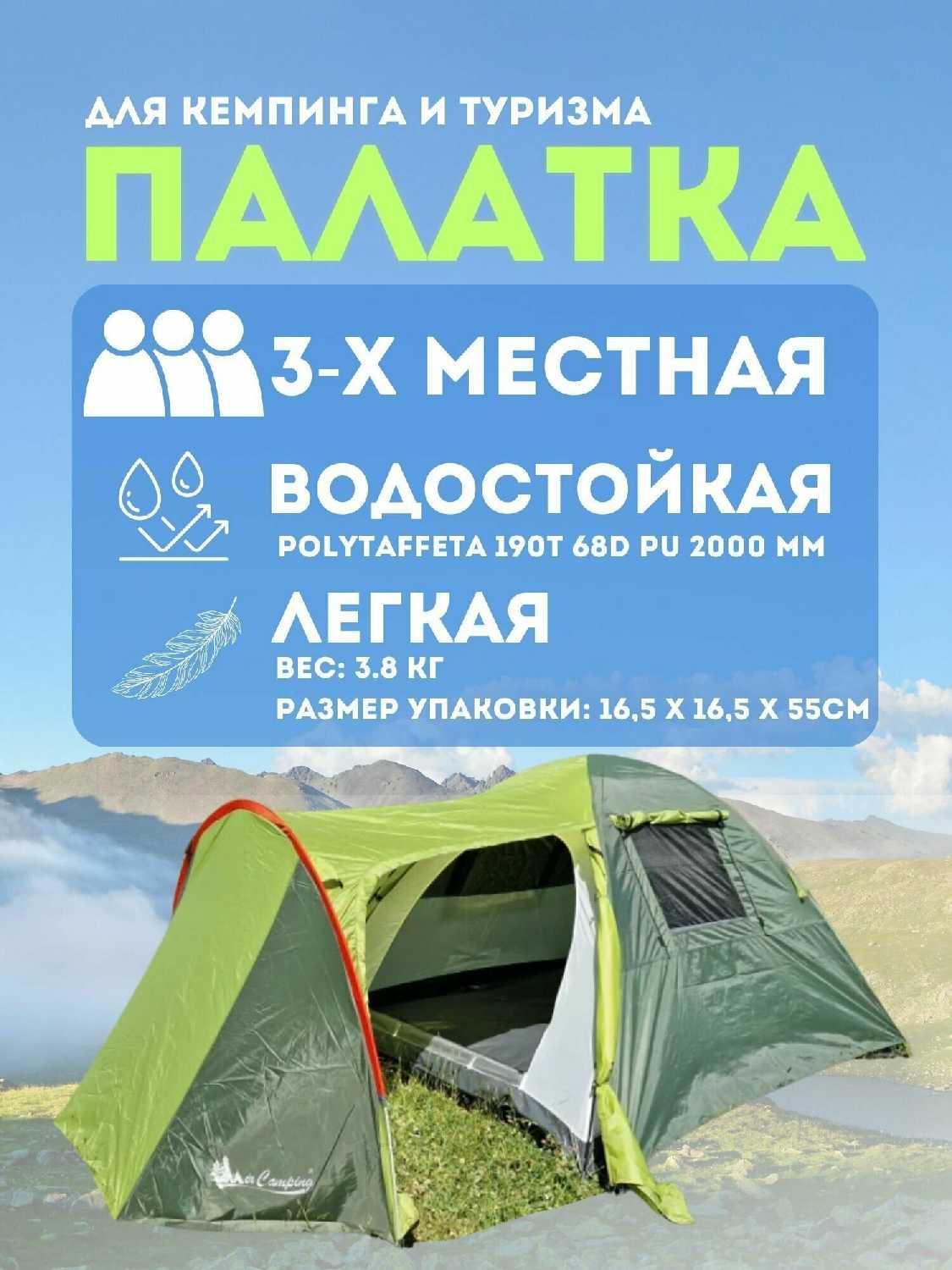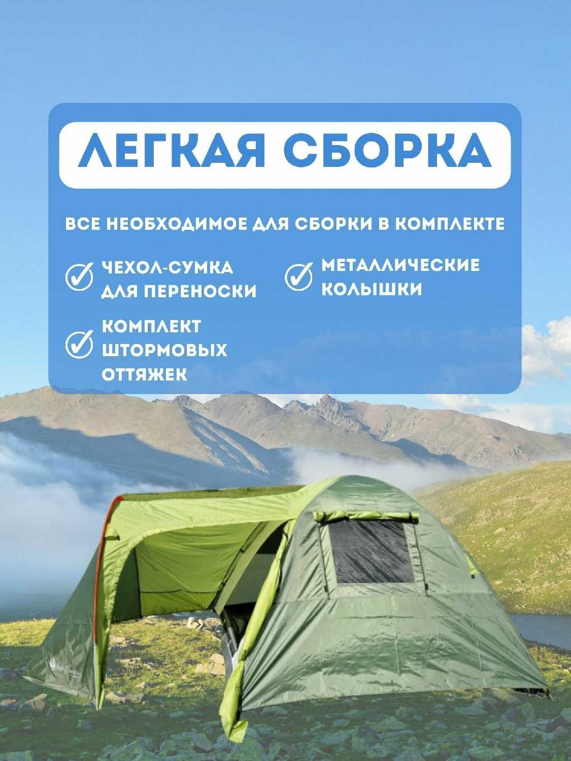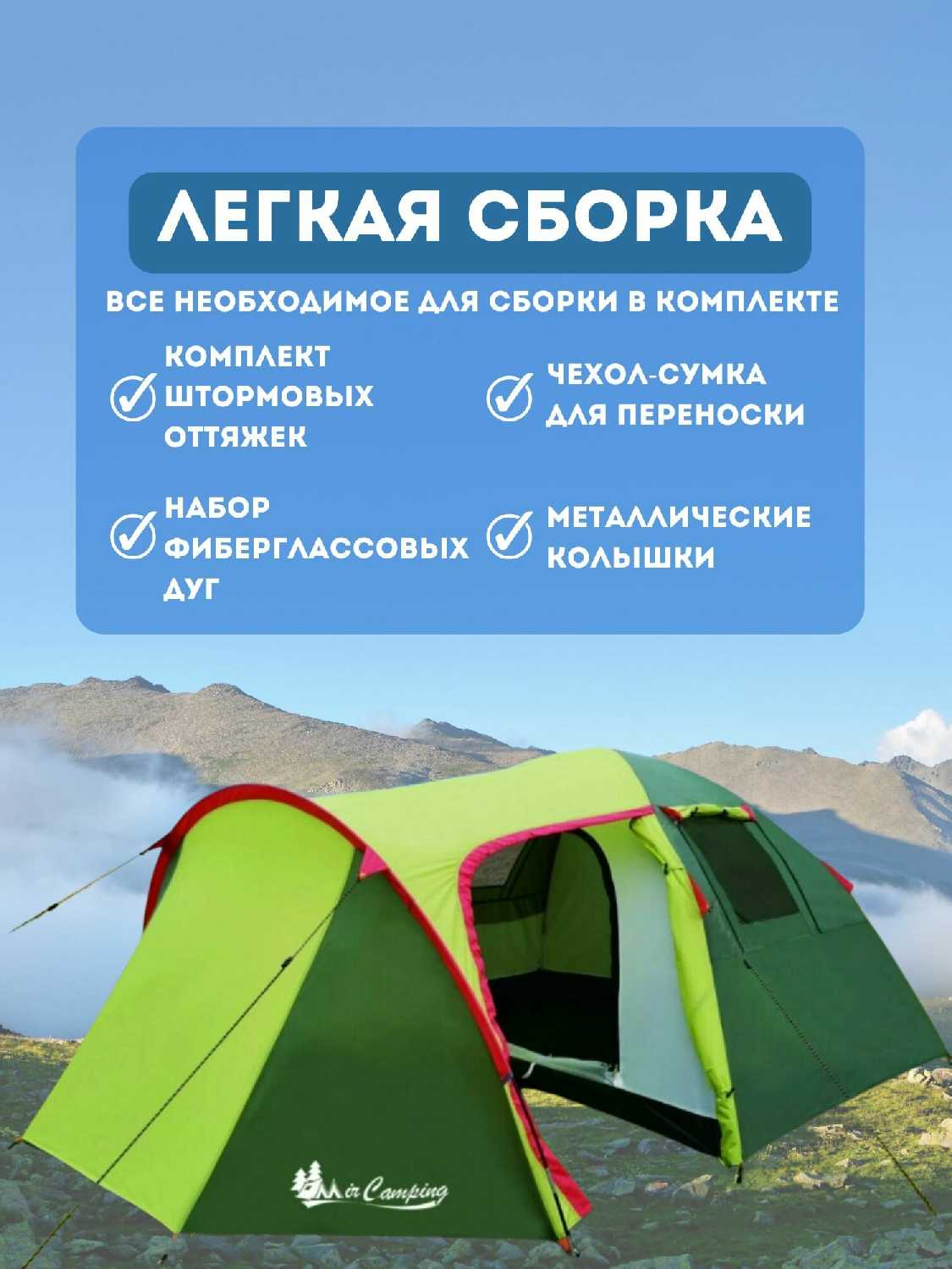 - + достаточно большая палатка. 4 человека спокойно могут поместиться. в тамбуре места много для вещей.