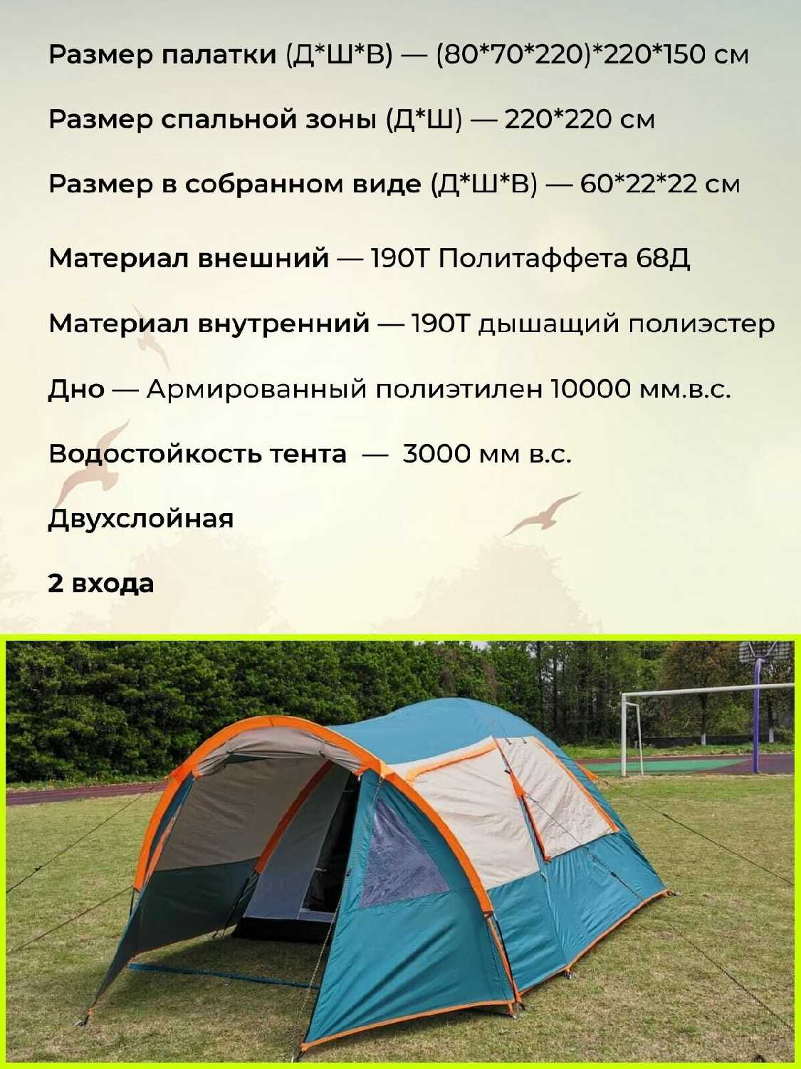- водостойкость тента: 3000 мм в. ст