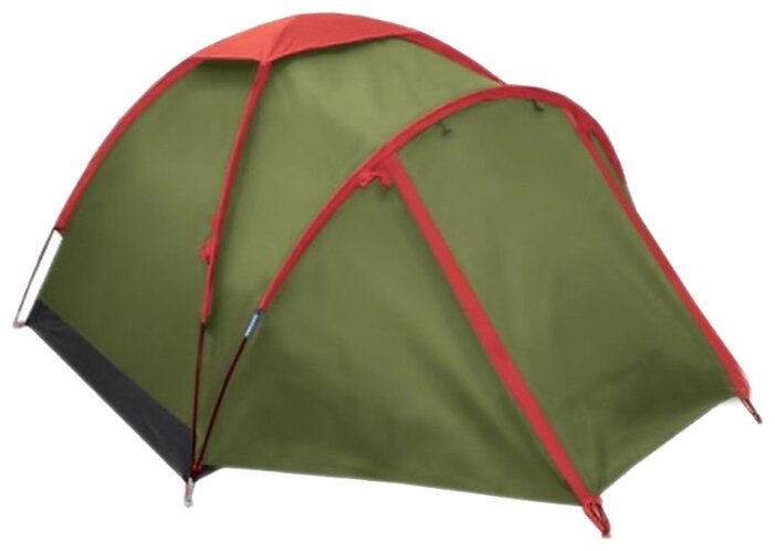 Два-три входа, одна сторона поднимается как навес для лета, но без оттяжек не стоит, стойки телескопические короткие. Тамбур просторный, но без пола и с щелями по крою.