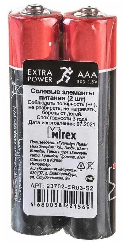 1 отзывов пользователей o Mirex Батарейка AAA солевая (R03)