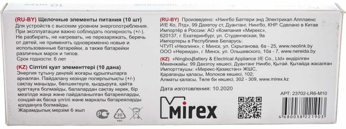 Лучшие цены сегодня на Mirex LR6 (AA)