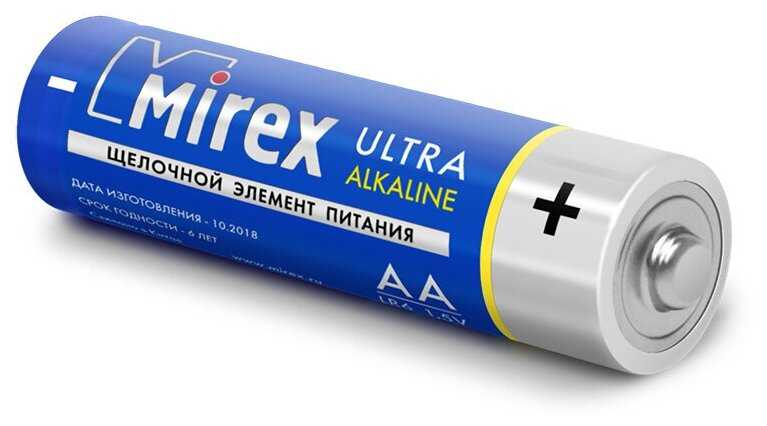 Очень качественные пальчиковые (АА) батарейки Mirex. Дешевая цена- большое количество(24 шт).Взяла упаковку себе и упаковку подружке.Сразу поменяла батарейки по всей квартире: в детских игрушках,зубной щетке,фонарике,весах,освежителе воздуха.Батарейки устойчивы к протеканию электролита.Надежны в эксплуатации.Срок хранения 6 лет.Экономичны т.к. имеют длительный срок службы.Купил один раз и забыл о проблеме на несколько лет.Советую к приобретению.Доставка быстрая,упаковка надежная.Спасибо.