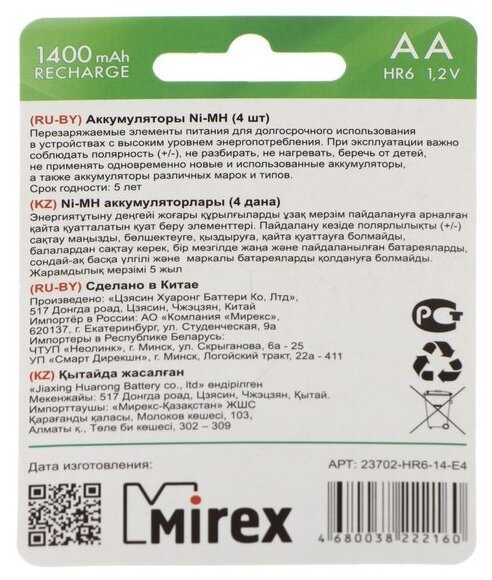22 отзывов пользователей o Mirex Recharge HR6 AA