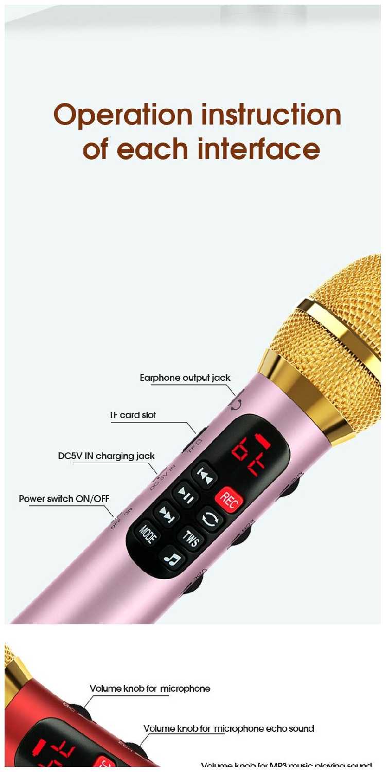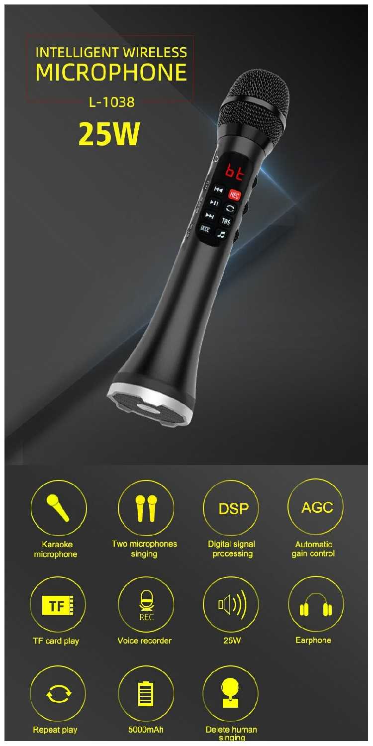 Подробная комплектация : | Караоке микрофон L1038 25W - Зарядный кабель USB/microUSB - Чехол для хранения - Руководство пользователя |