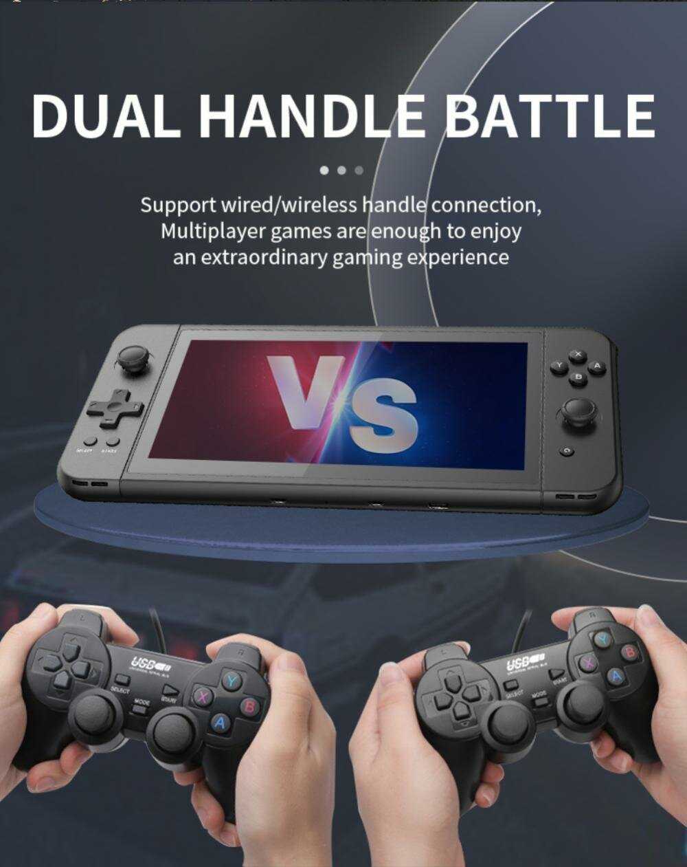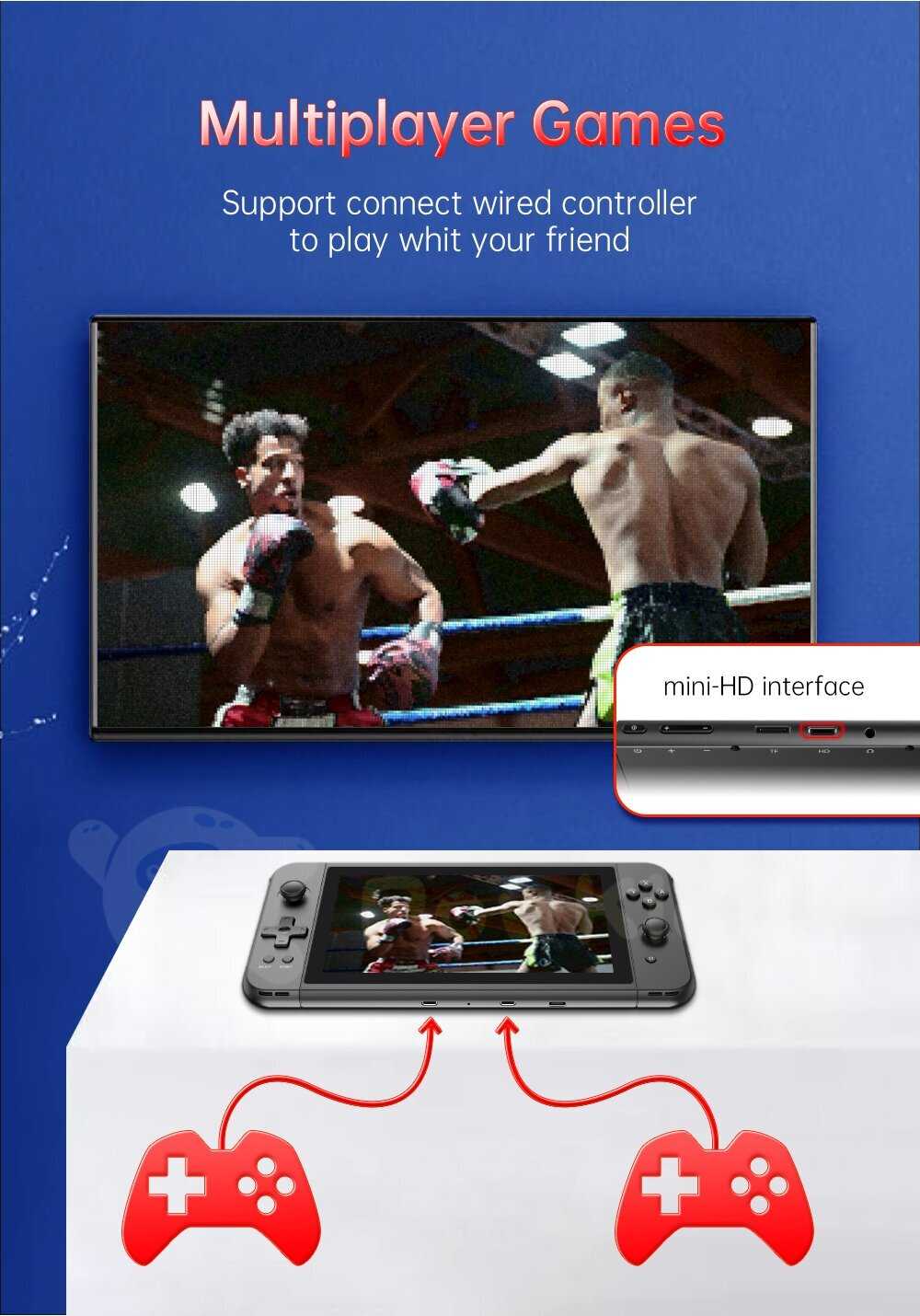 - + Большой экран, HDMI выход, подключение геймпадов, неплохая эмуляция ps1, тайп С разъем для зарядки, подключение наушников.