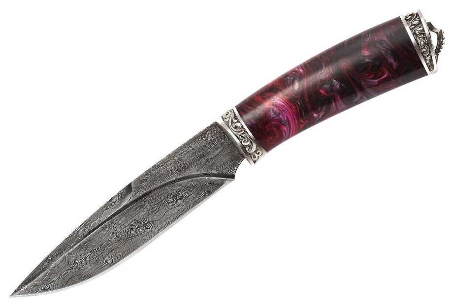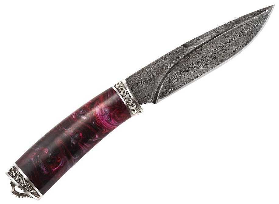 Лучшие цены сегодня на Mirus Group "Нож ручной работы Енот, Дамасская сталь, рукоять акрил, цвет фиолетовый"