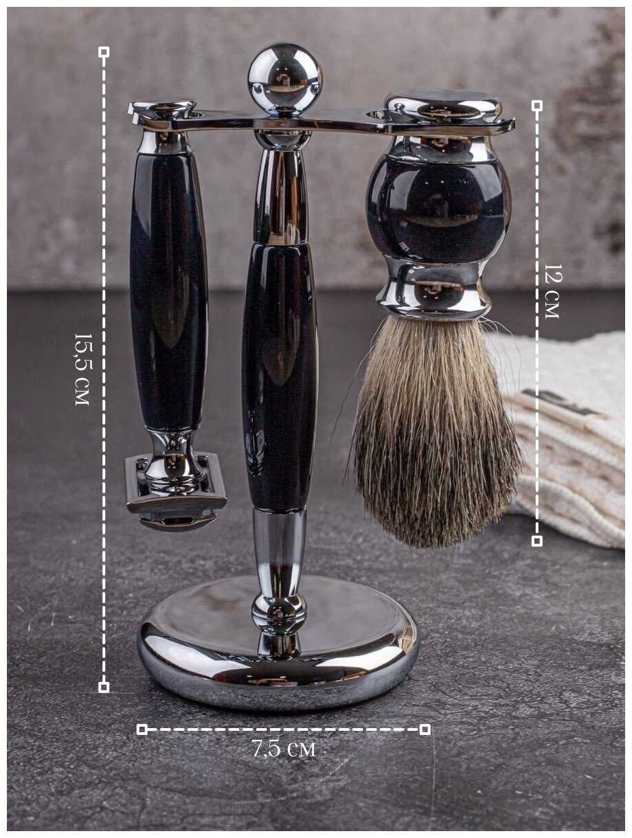 Состав набора : | бритвенный станок, подставка для станка, помазок, чаша для бритья |