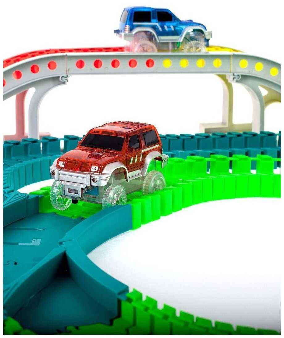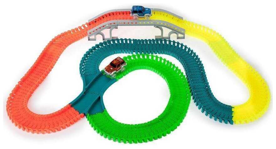 - + Крепится надежно, машинки ездят хорошо, светятся, можно до заказывать дополнительные комплекты