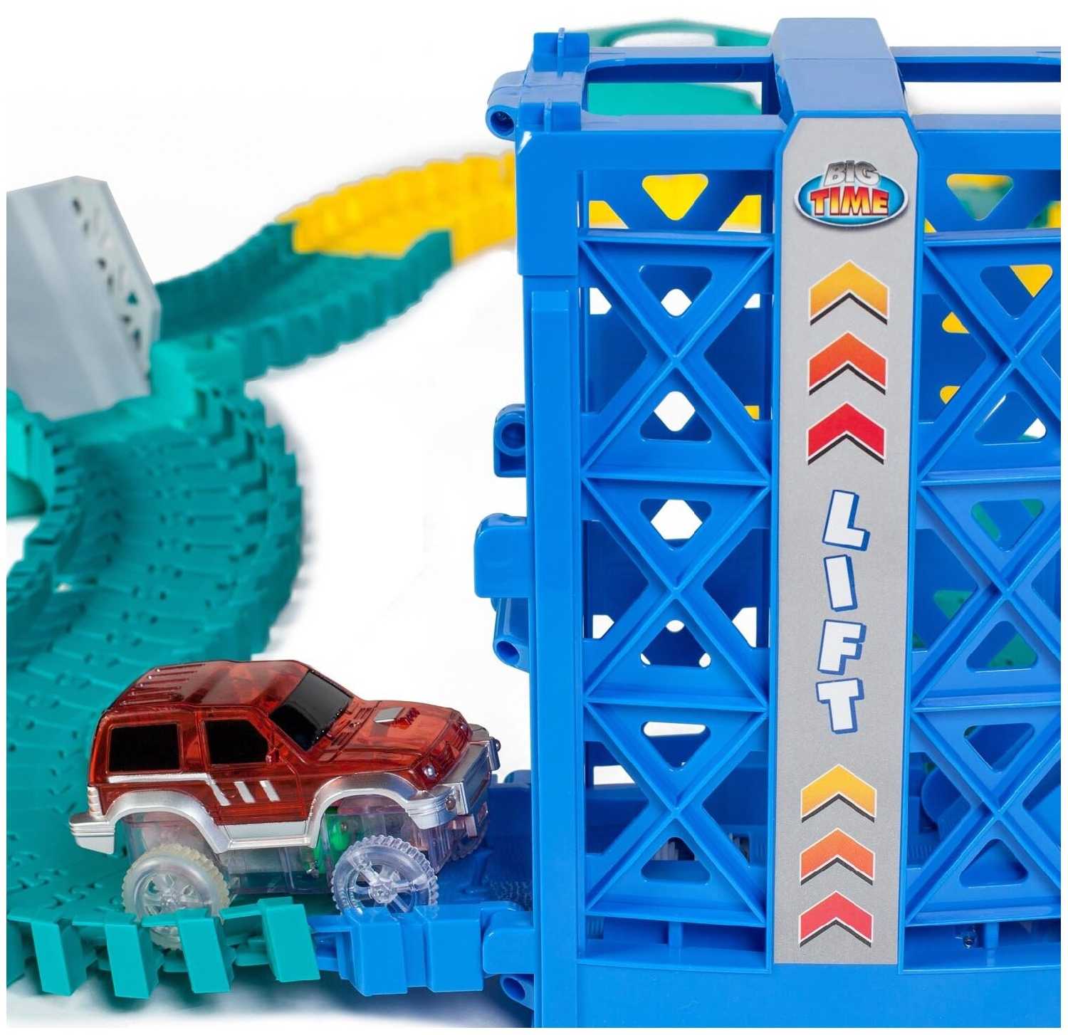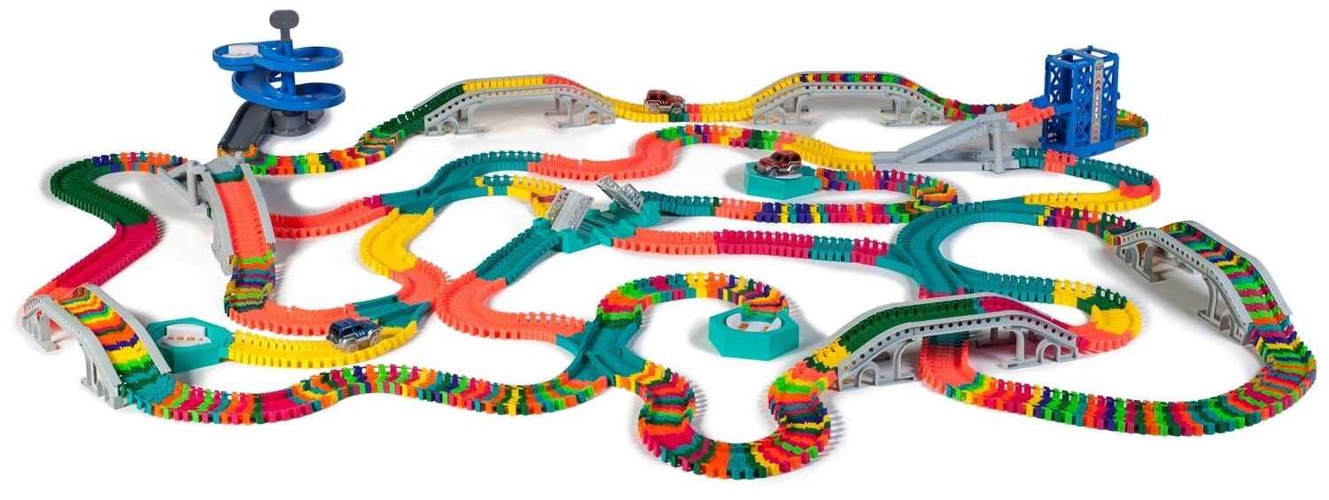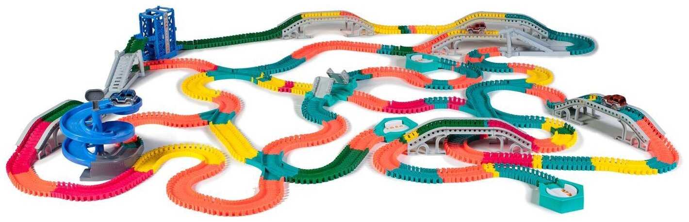 Комплектация : | 1000 сегментов, 4 машинки, 6 мостов, 8 перекрестков, лифт, разводной мост, серпантин, 2 спуск-подъема, 3 механических разворота |