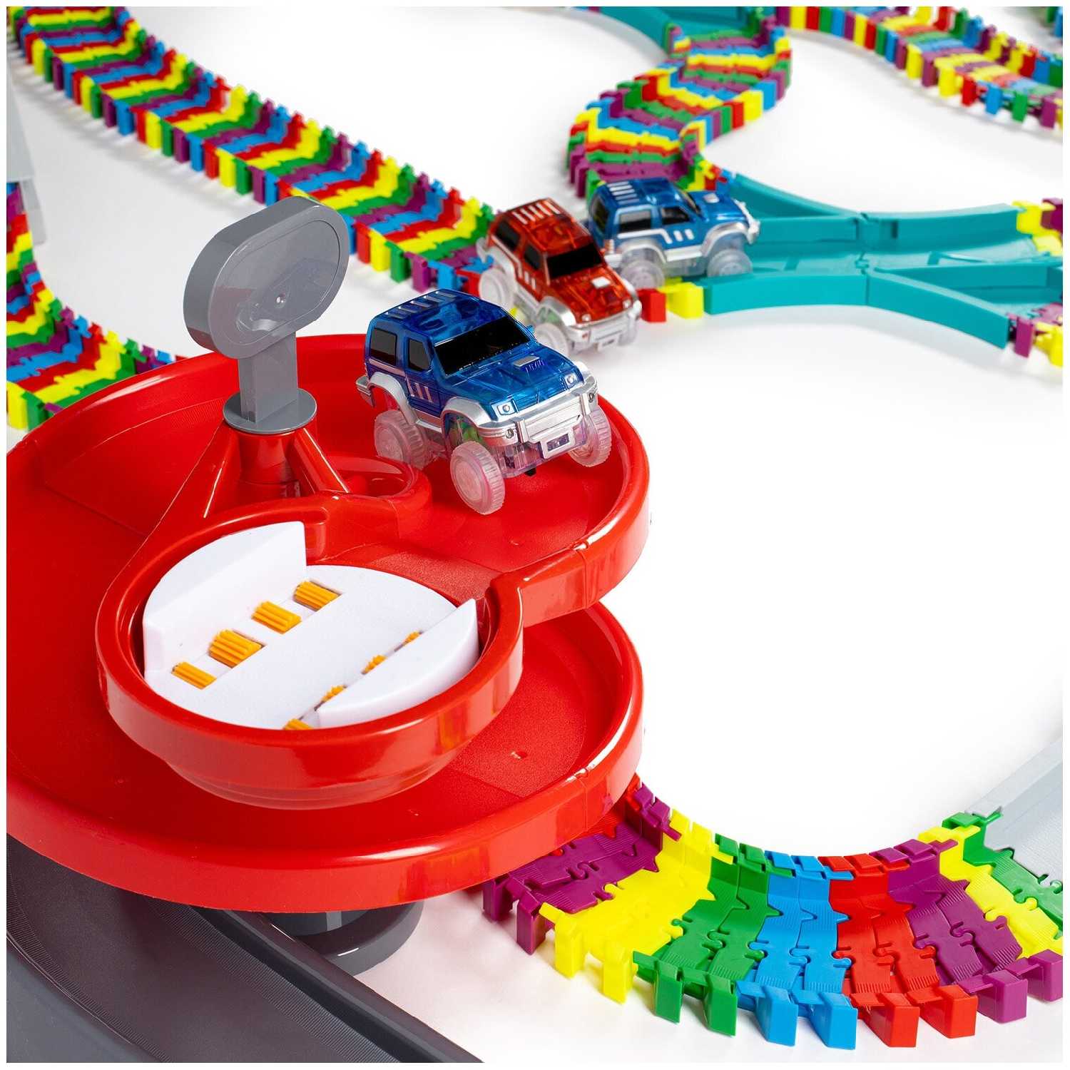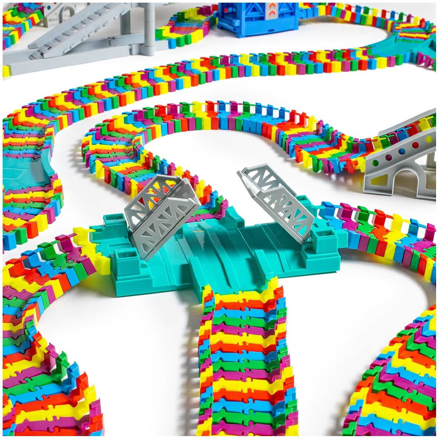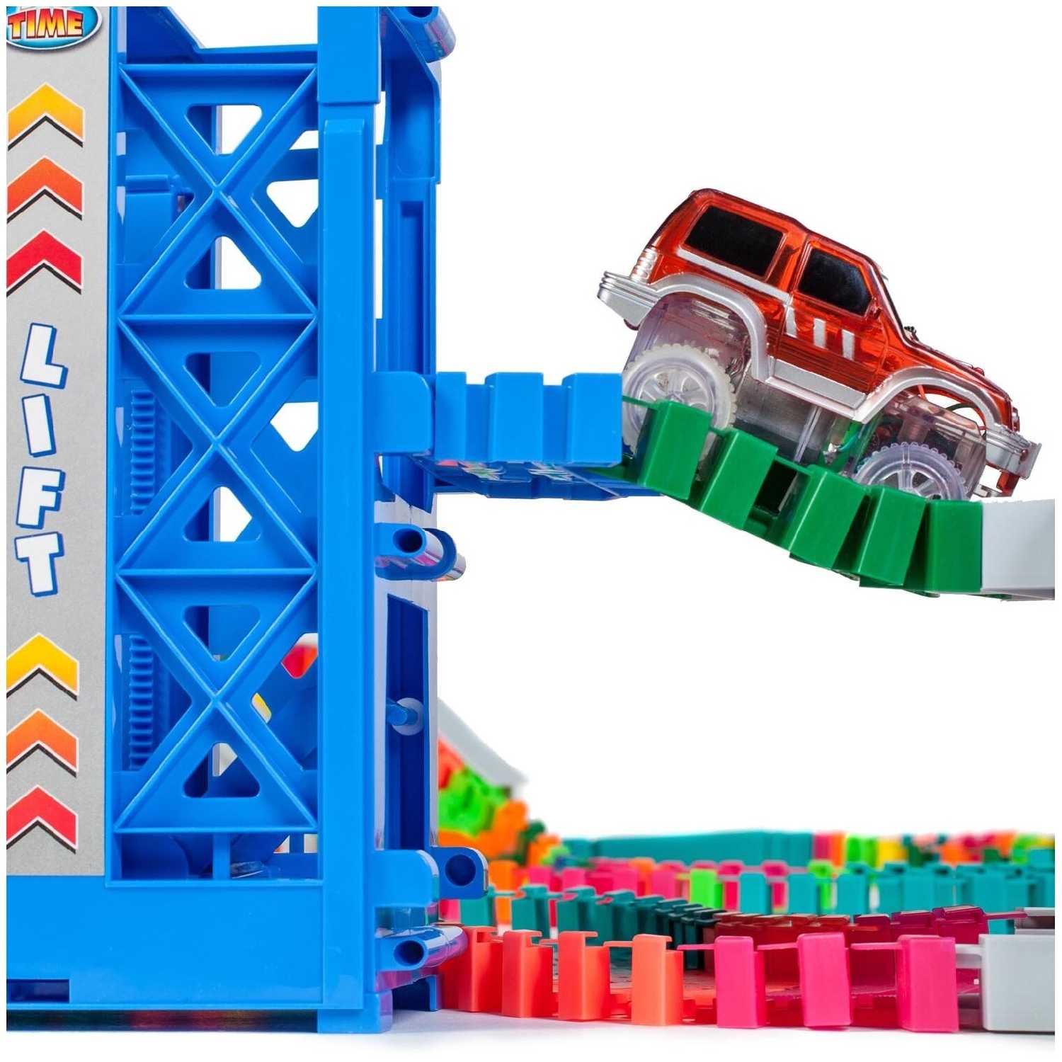Комплектация : | 1000 сегментов, 4 машинки, 6 мостов, 8 перекрестков, лифт, разводной мост, серпантин, 2 спуск-подъема, 3 механических разворота |