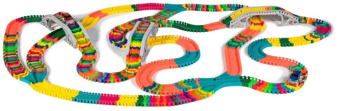отличный трек, купила 3 набора, собирается огромная дорога. все крепко, чётко. ребенок доволен, сам собирает разбирает